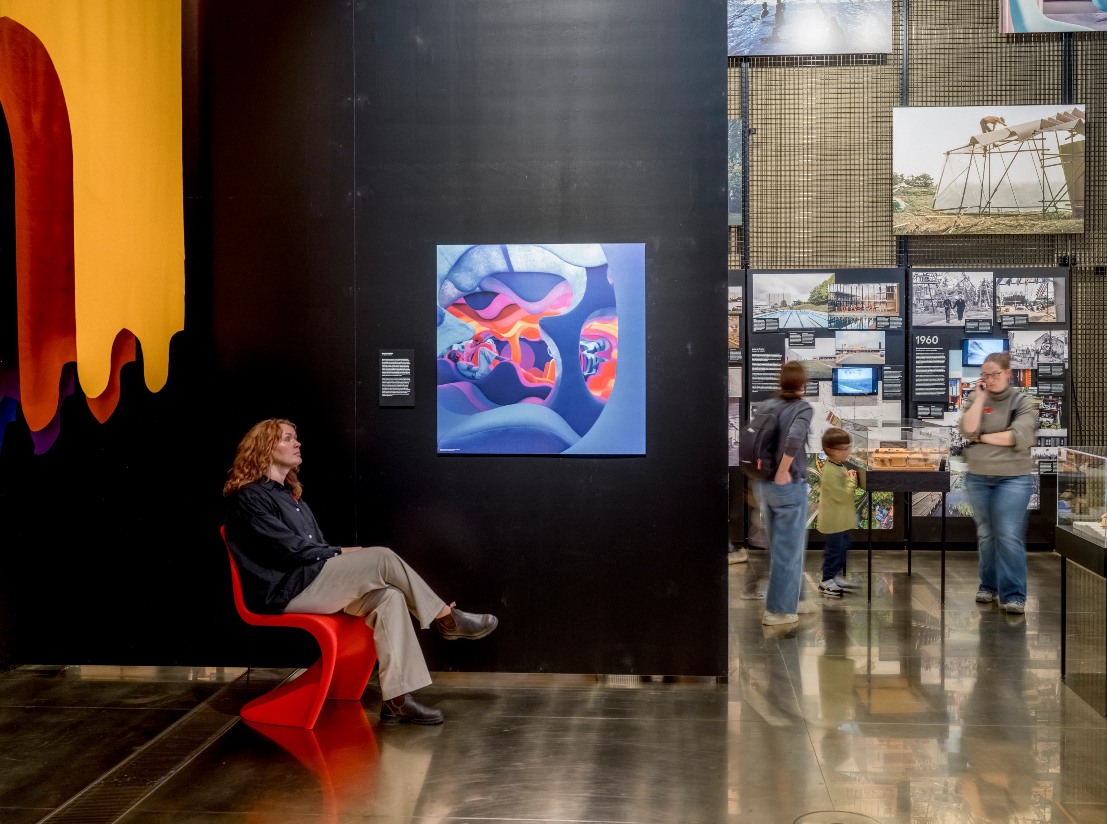 Three out of five landings are accessible by lift from the DAC Design Shop. However, please note that the lift only goes up to the third landing, meaning the top part of the exhibition, including the introduction text, is not accessible by wheelchair due to technical limitations. The lift measures 100 x 77 cm. If your wheelchair does not fit in the lift, DAC offers a wheelchair you can borrow, available to guests with reduced mobility as well. Please reserve it no later than 12:00 the day before your visit by writing to welcome@dac.dk. Please note that there is no elevator access to this exhibition.
