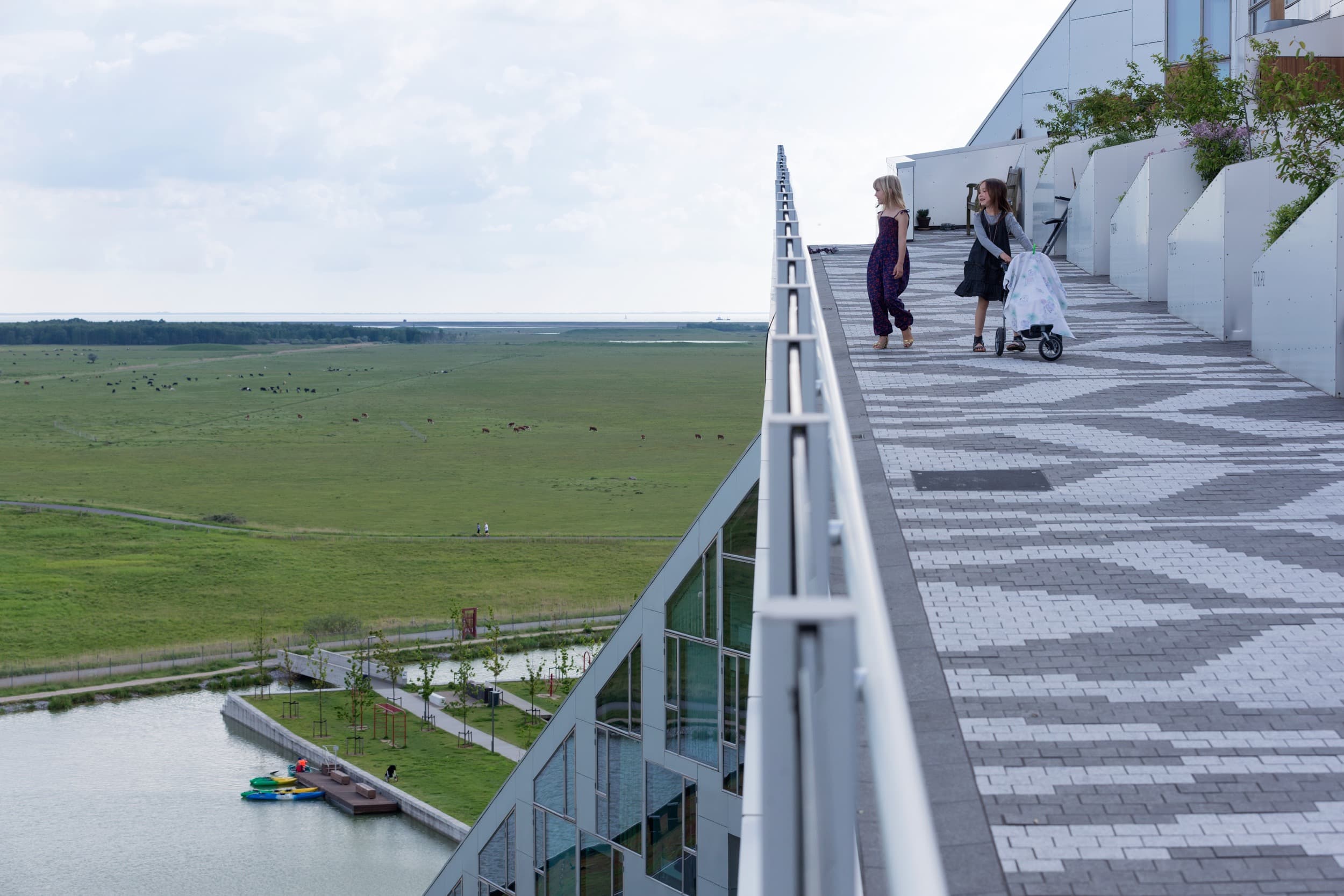 The building houses people in every phase of life: young and old, singles and families. Its 476 residences comprise several dwelling types: two-story townhouses with small gardens, flats with balconies and penthouse apartments with rooftop terraces.