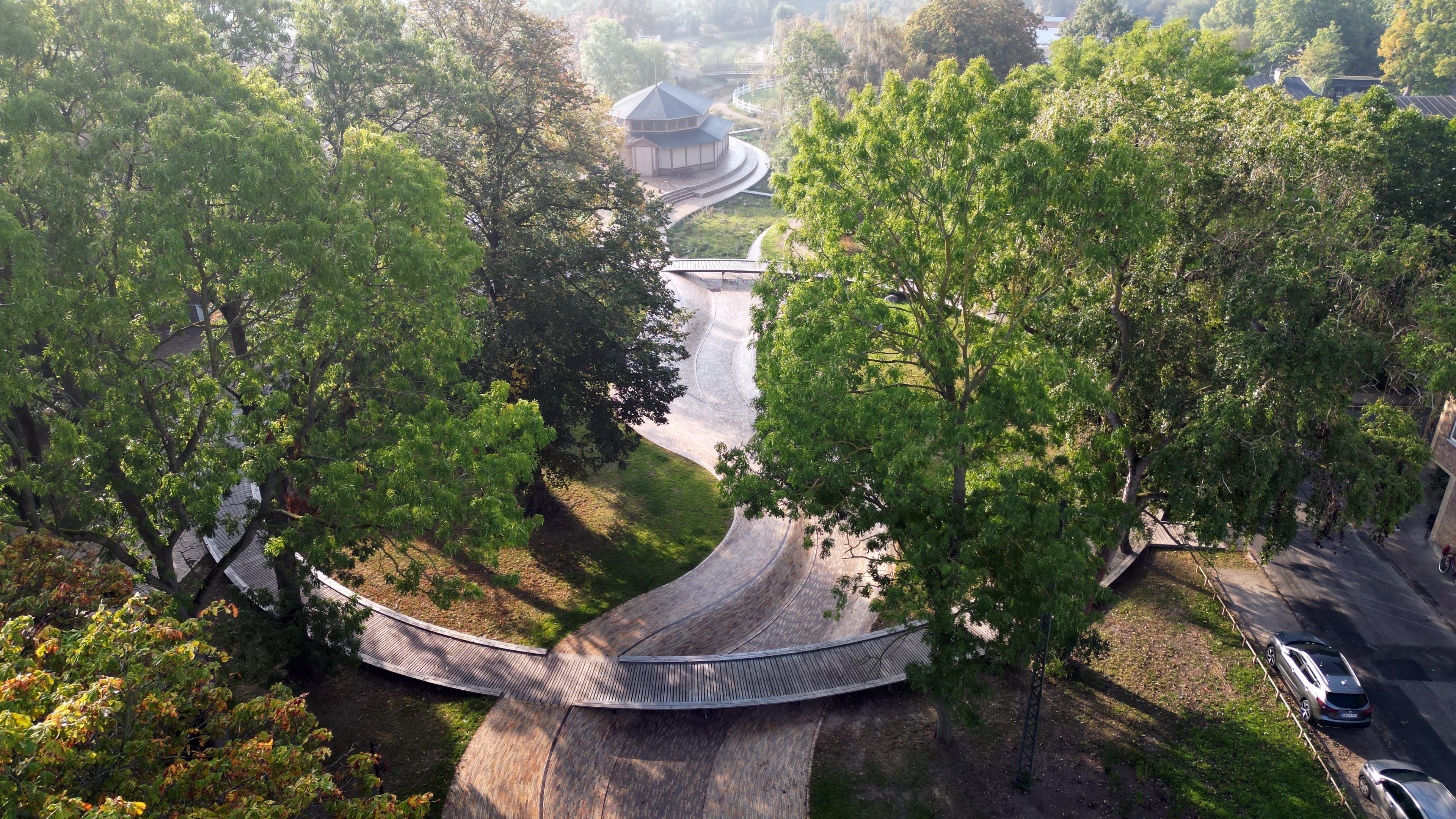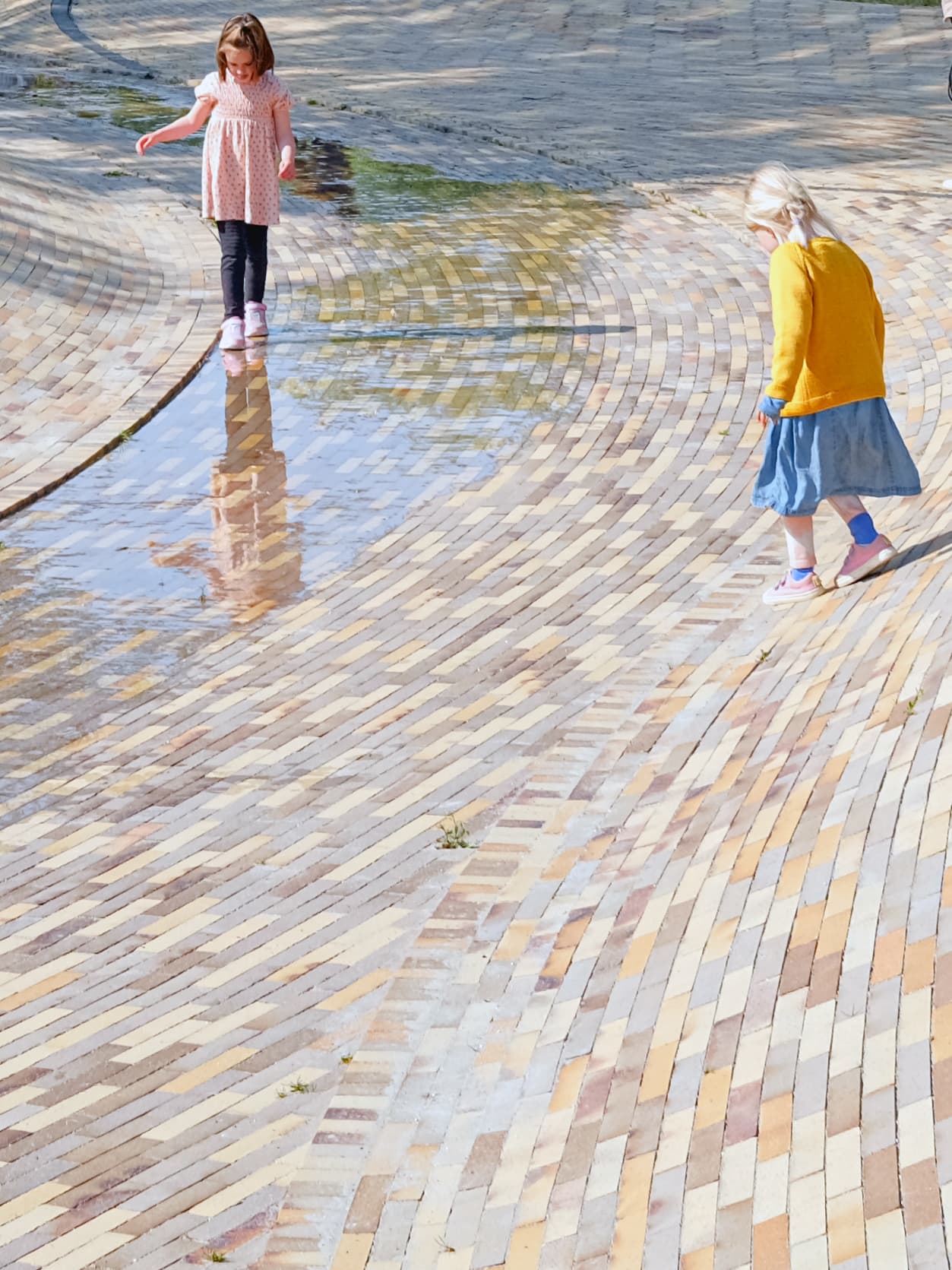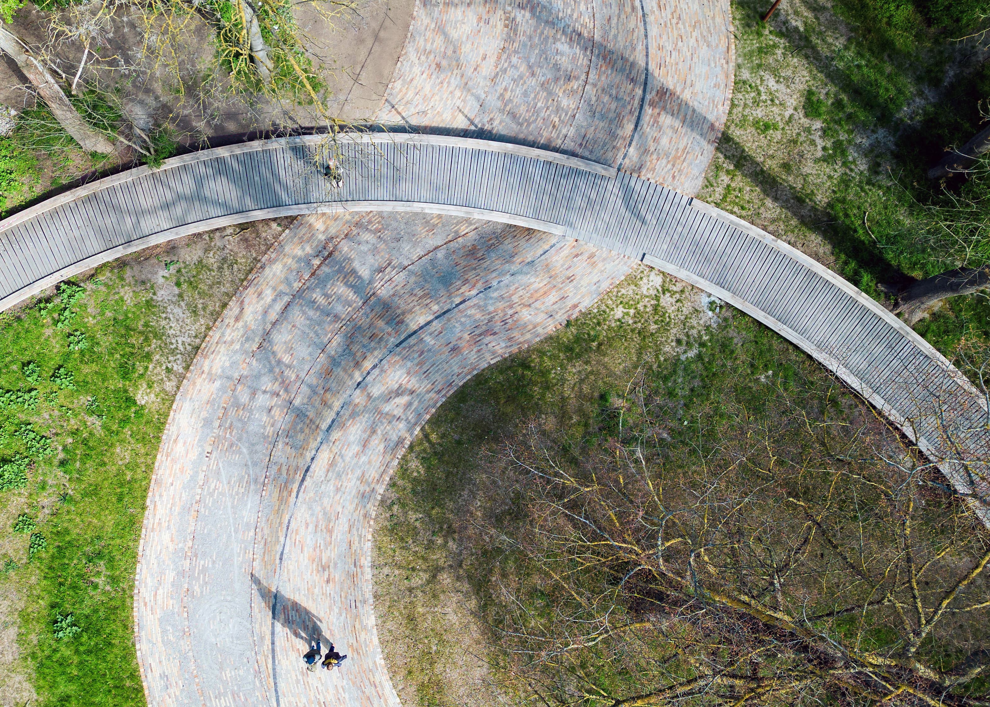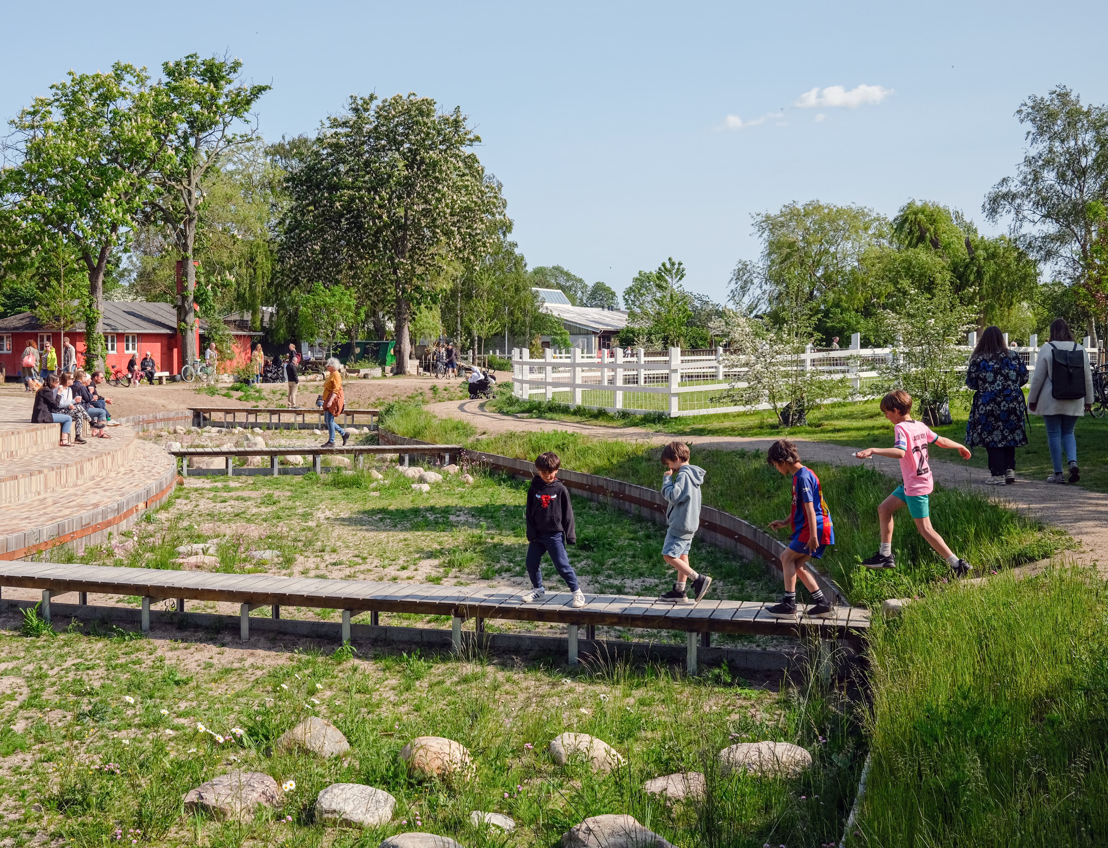 In the southern part of Copenhagen, a brick path meanders like a river through a green landscape. On dry days, you can walk on the path and enjoy nature, and when the rain falls heavily, the area serves as flood protection for residents around the park.