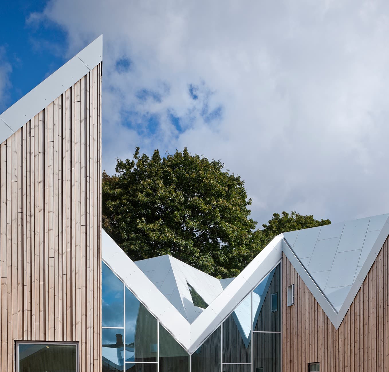 Derfor ligner det nye center heller ikke en klinik eller et hospital. Udefra ser man en lang række små individuelle huse med facader af skinnende aluminium. Indvendigt hænger de små huse sammen under det krøllede tag med vægge af træ, der skaber en varm og behagelig atmosfære.