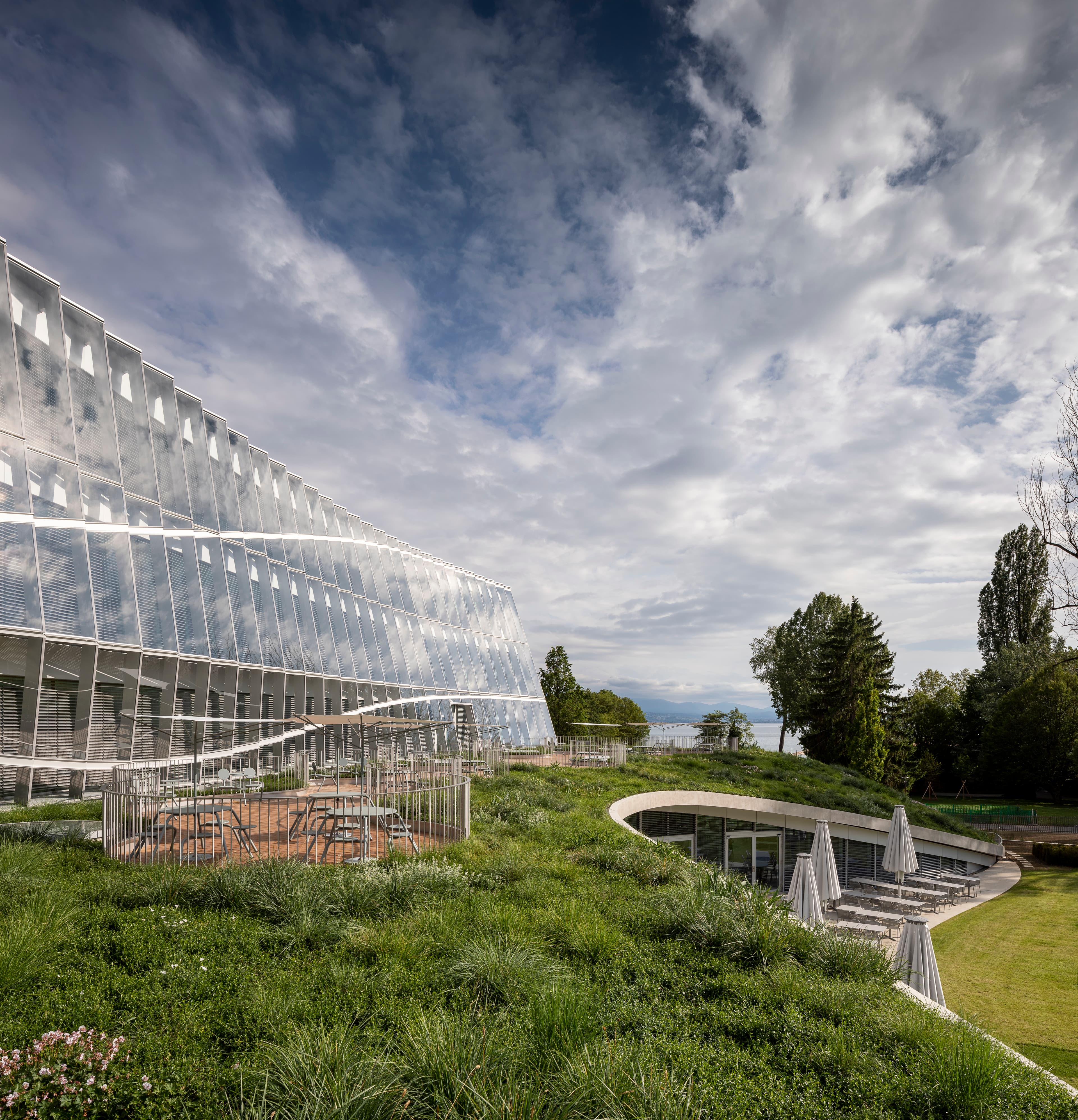 Det var vigtigt, at bygningen havde så lille et klimaaftryk som muligt og blev bygget med tanke for miljøet. Af særlige tiltag kan nævnes, at solcellerne på taget leverer 10 procent af bygningens elektricitet, fra Genevesøen trækkes vand til opvarmning og køling af bygningen, og udenfor opsamler de grønne arealer regnvand, der reducerer bygningens vandforbrug. Solens stråler giver desuden lys og er med til at opvarme glasbygningen gennem et dobbelt facadevinduessystem.