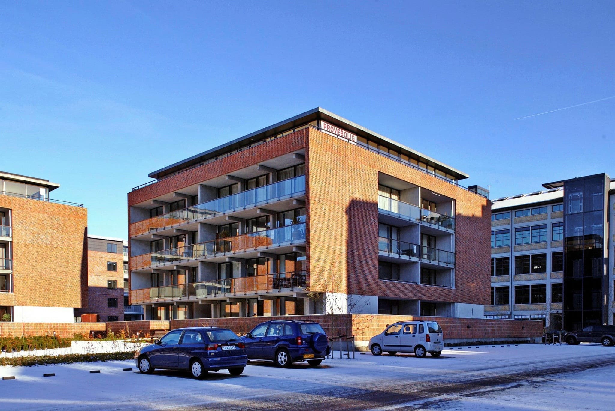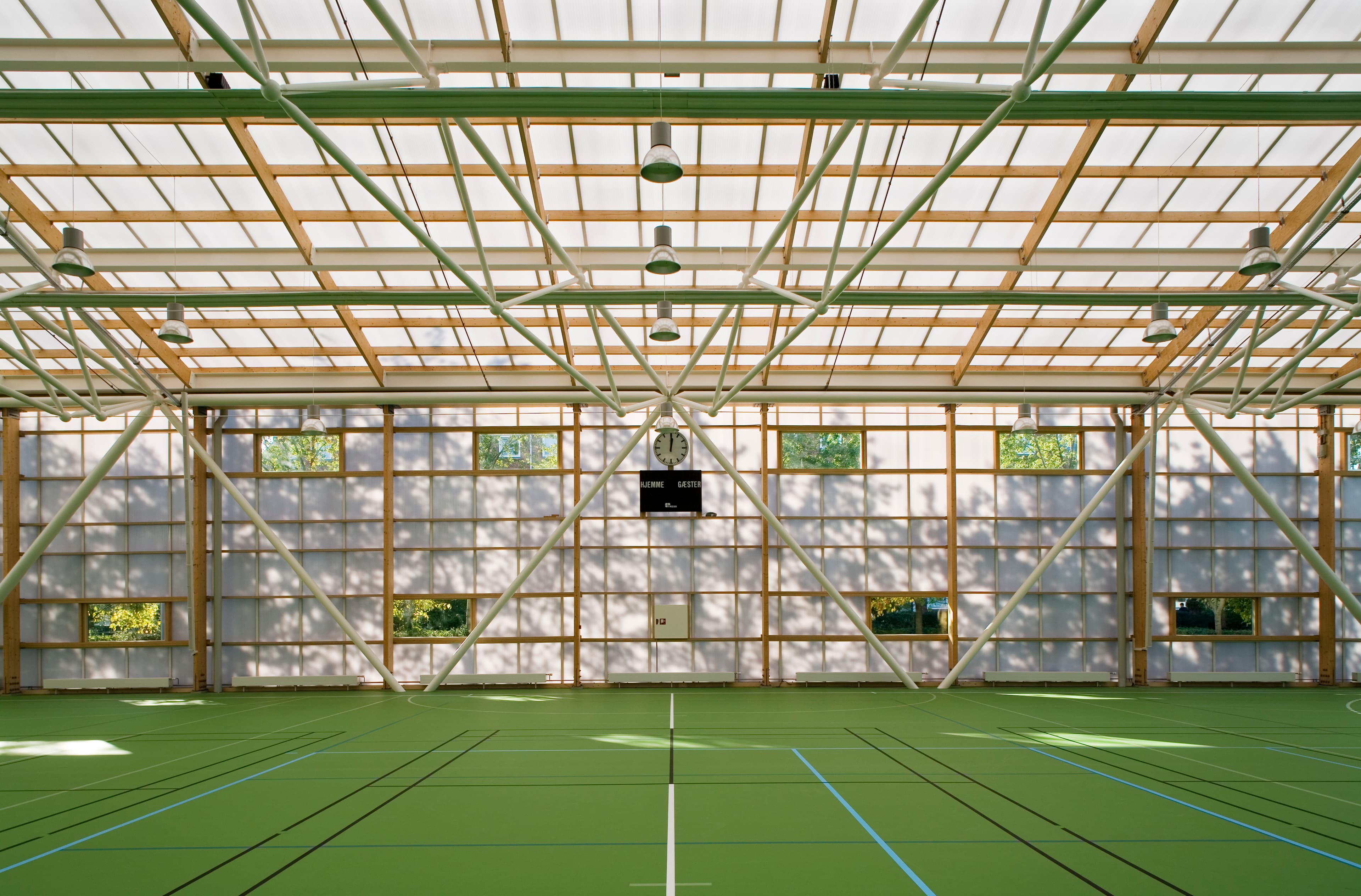 Det indendørs landskab i idræts- og kulturhuset har fået en gigantisk gennemsigtig overdækning. Som en slags svømmehud er overdækningen spændt ud mellem det nye hus og fire tilstødende gavle på et eksisterende boligbyggeri.