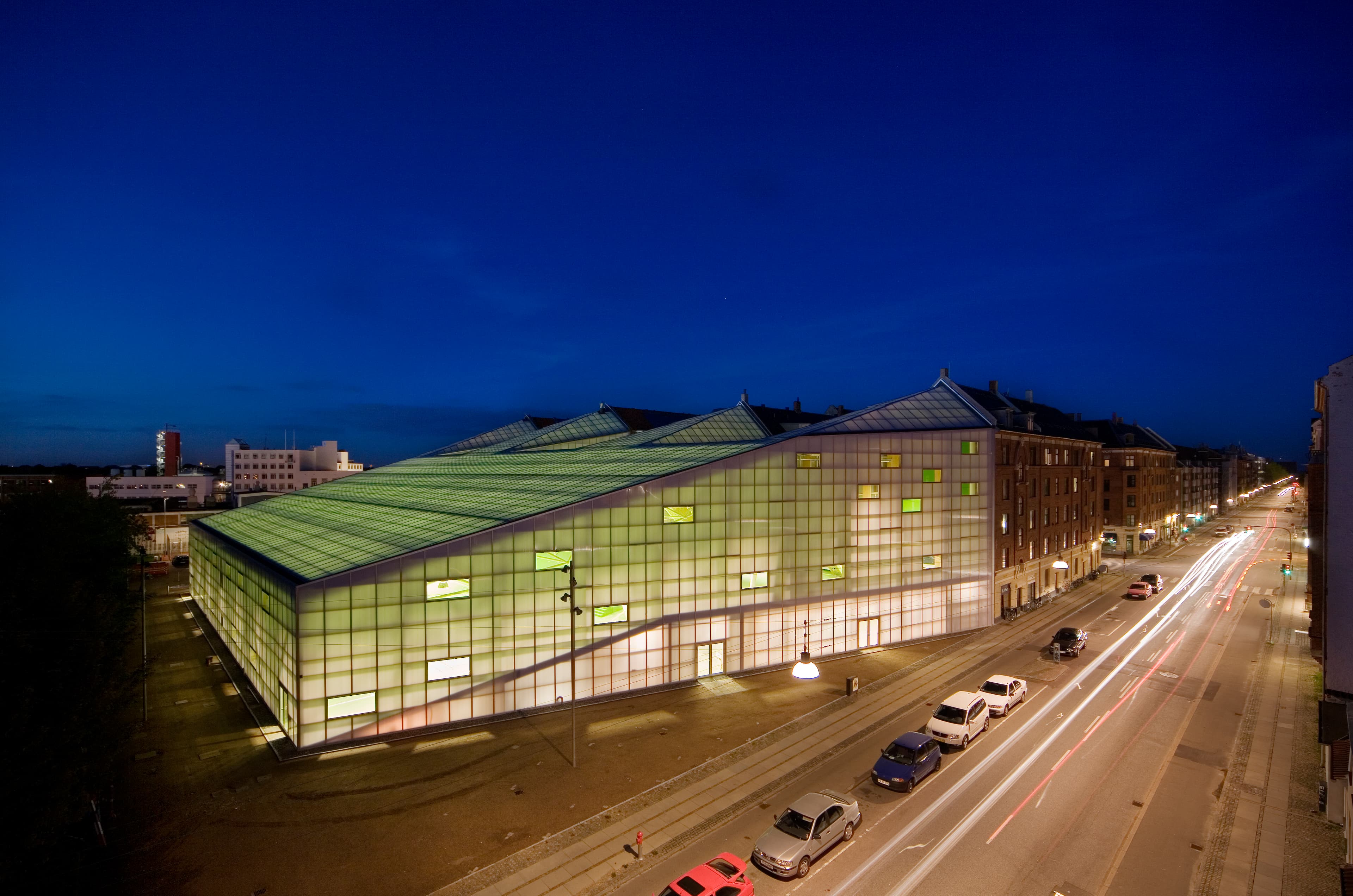 Det giver idræts- og kulturhuset en karakteristisk form, næsten som en andefod. Den gennemsigtige overdækning sikrer optimalt lysindfald overalt i huset. Når mørket falder på, står det nye hus som en lysende krystal i Holmbladsgade, hvor skyggerne fra de indendørs aktiviteter vil være synlige udefra.