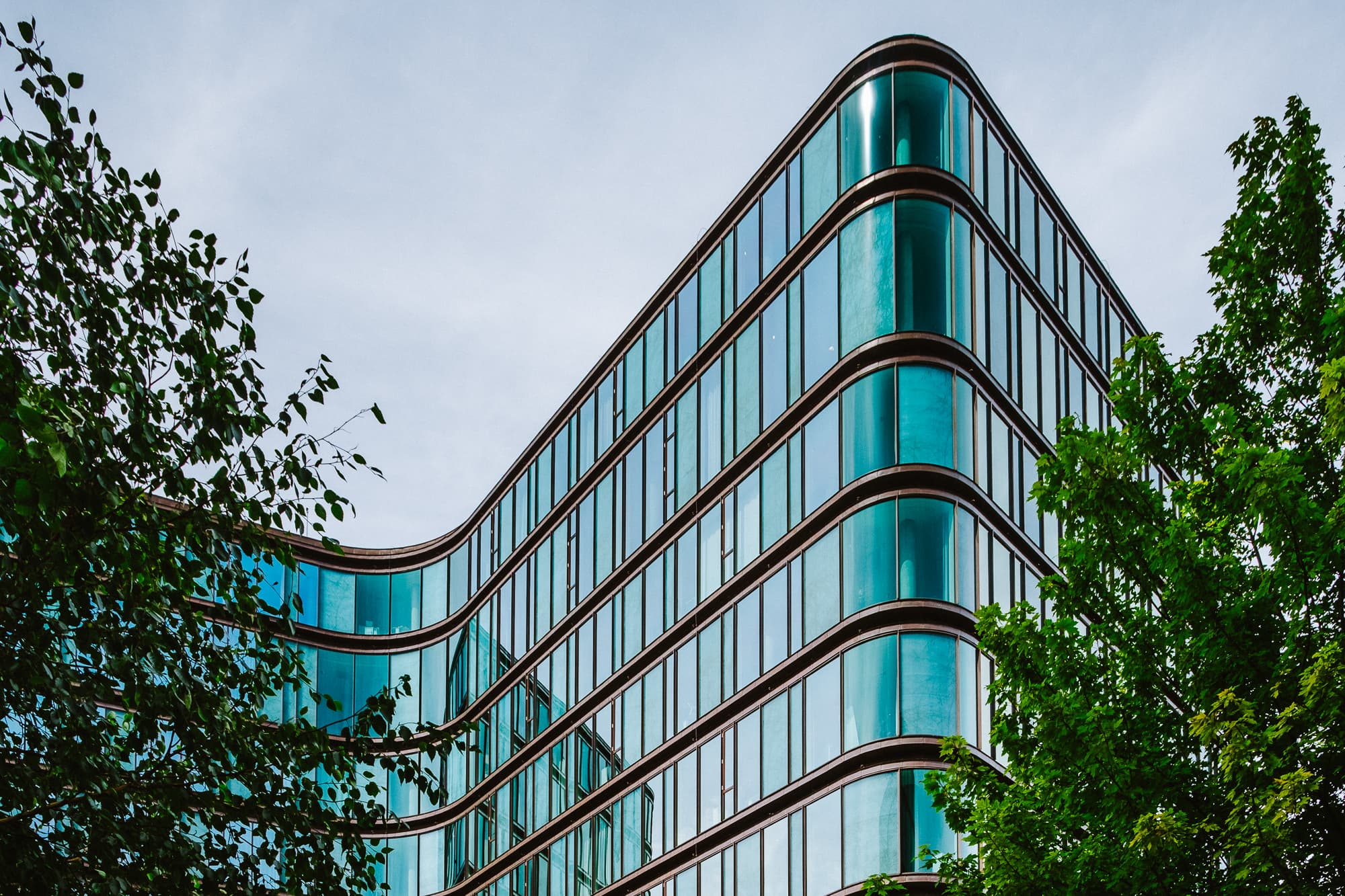 I et rodet, trafikalt knudepunkt giver et elegant og organisk byggeri overraskende plads til offentligheden. Mellem de tre kobbertårne er der offentlig adgang til et roligt landskab, der hæver sig op over gaden.