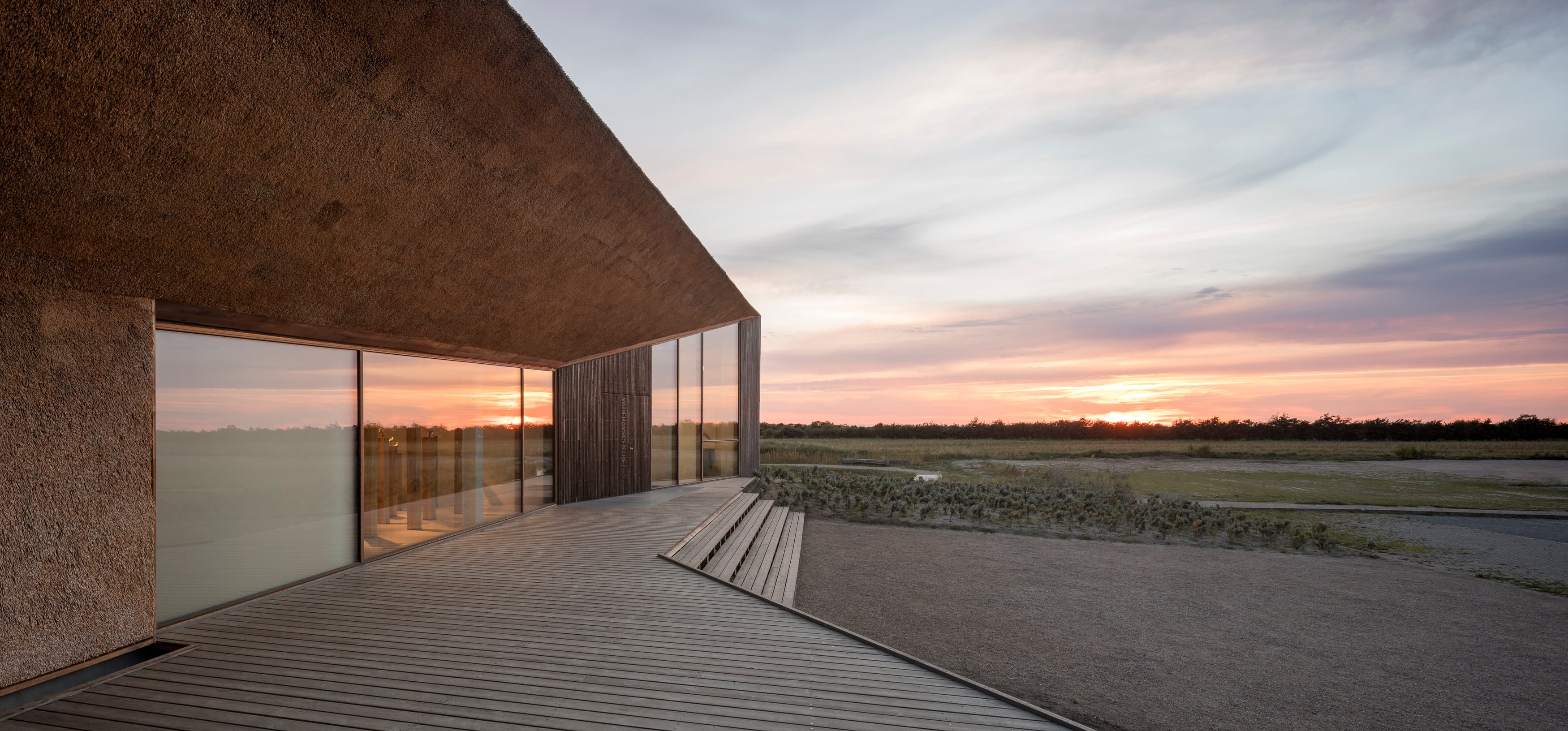 - Normalt ”tækker” man blot tage på huse, men på Vadehavscentret fortsætter stråtaget hele vejen ned til der, hvor bygningen møder jorden