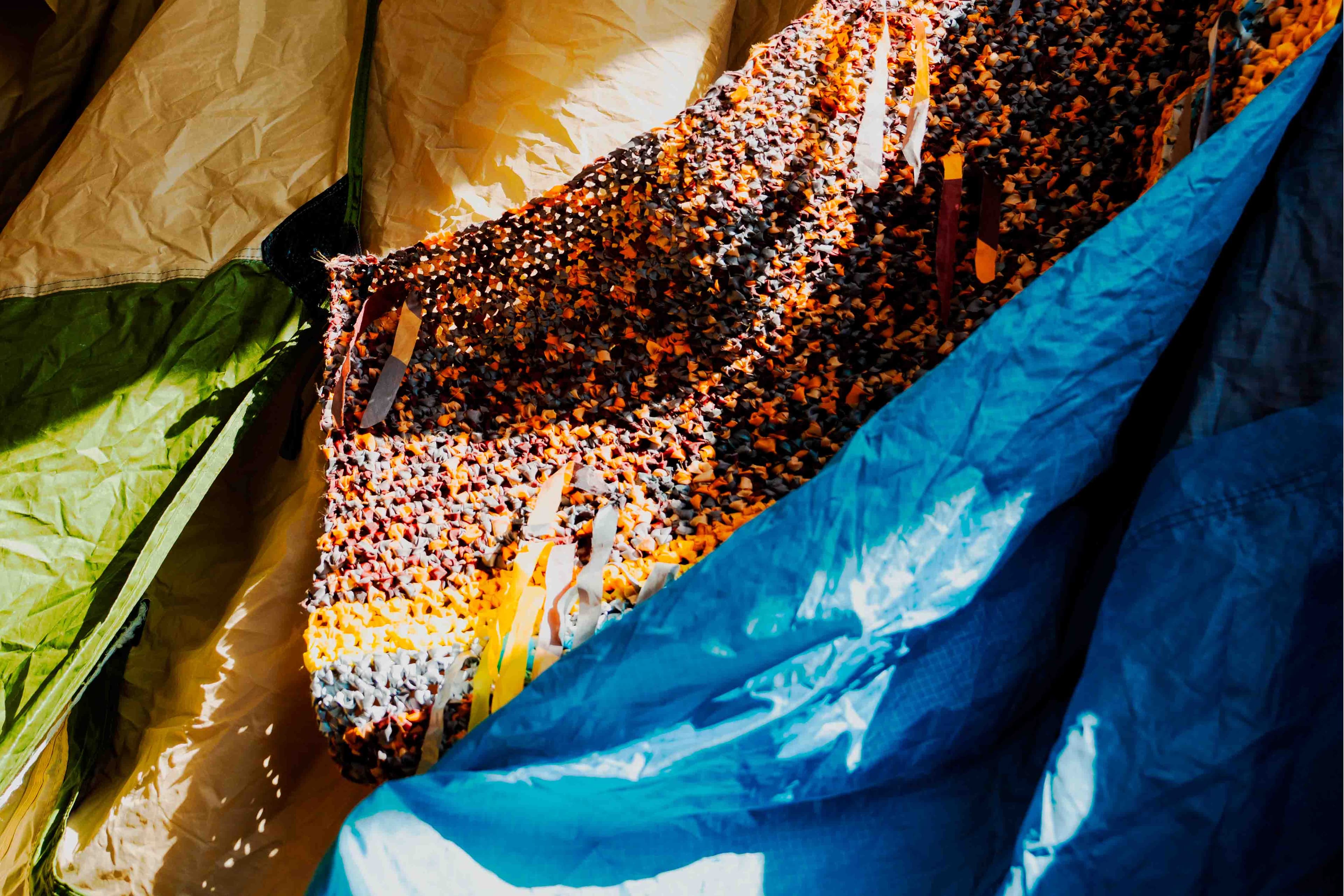 Deres primære arbejdsmateriale er telte fra Roskilde Festival.