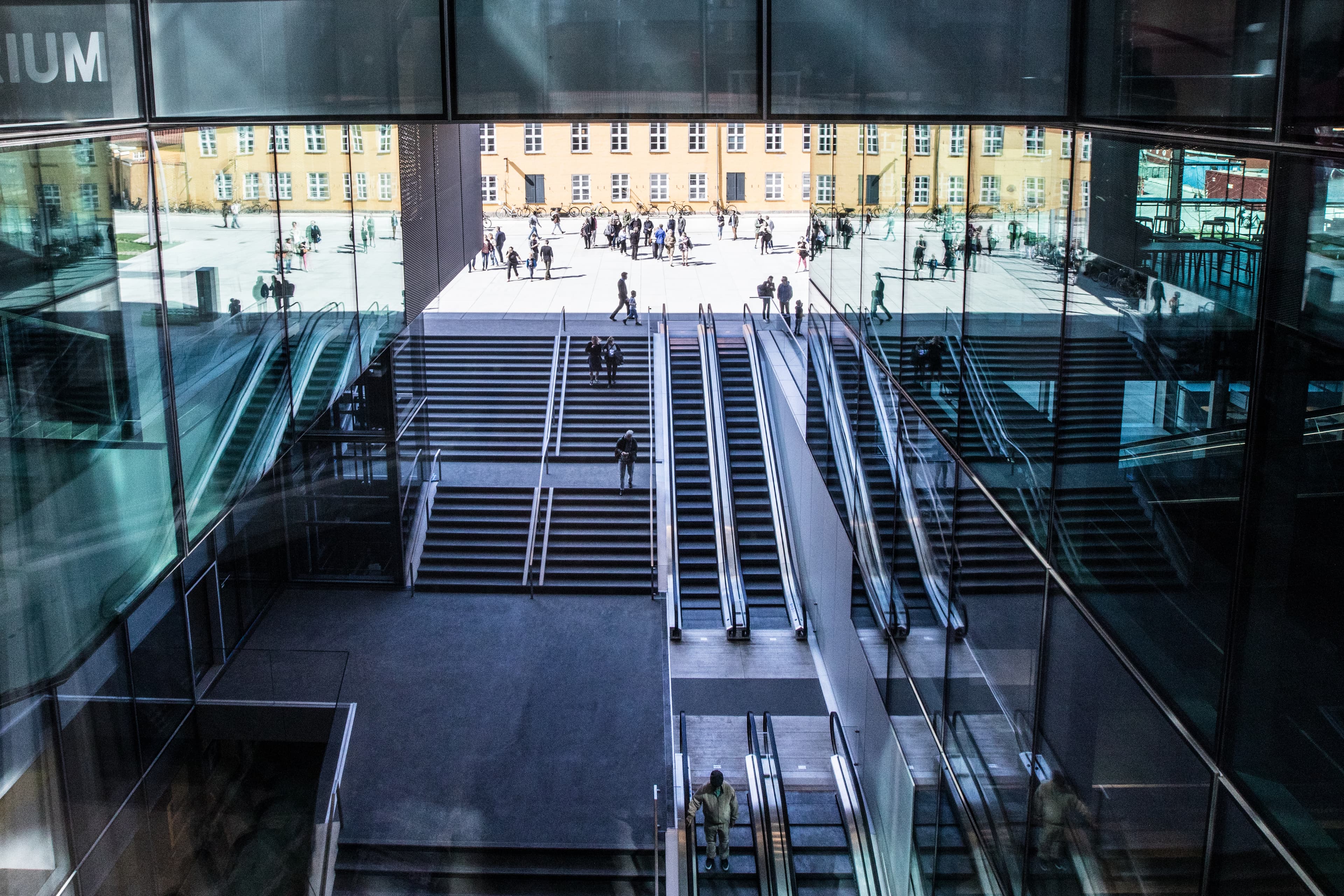 Når brandalarmen er overstået, sker indgang til udstillingerne igennem billetsalget Welcome.