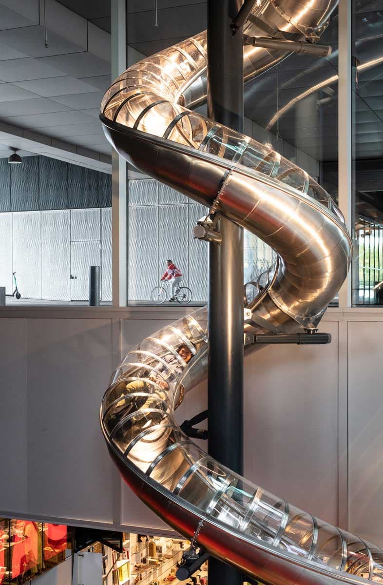 Tør du at prøve Københavns hurtigste og vildeste kunstinstallation? Udfordr dine sanser med en 40 meter lang rutsjetur hele fire etager ned.