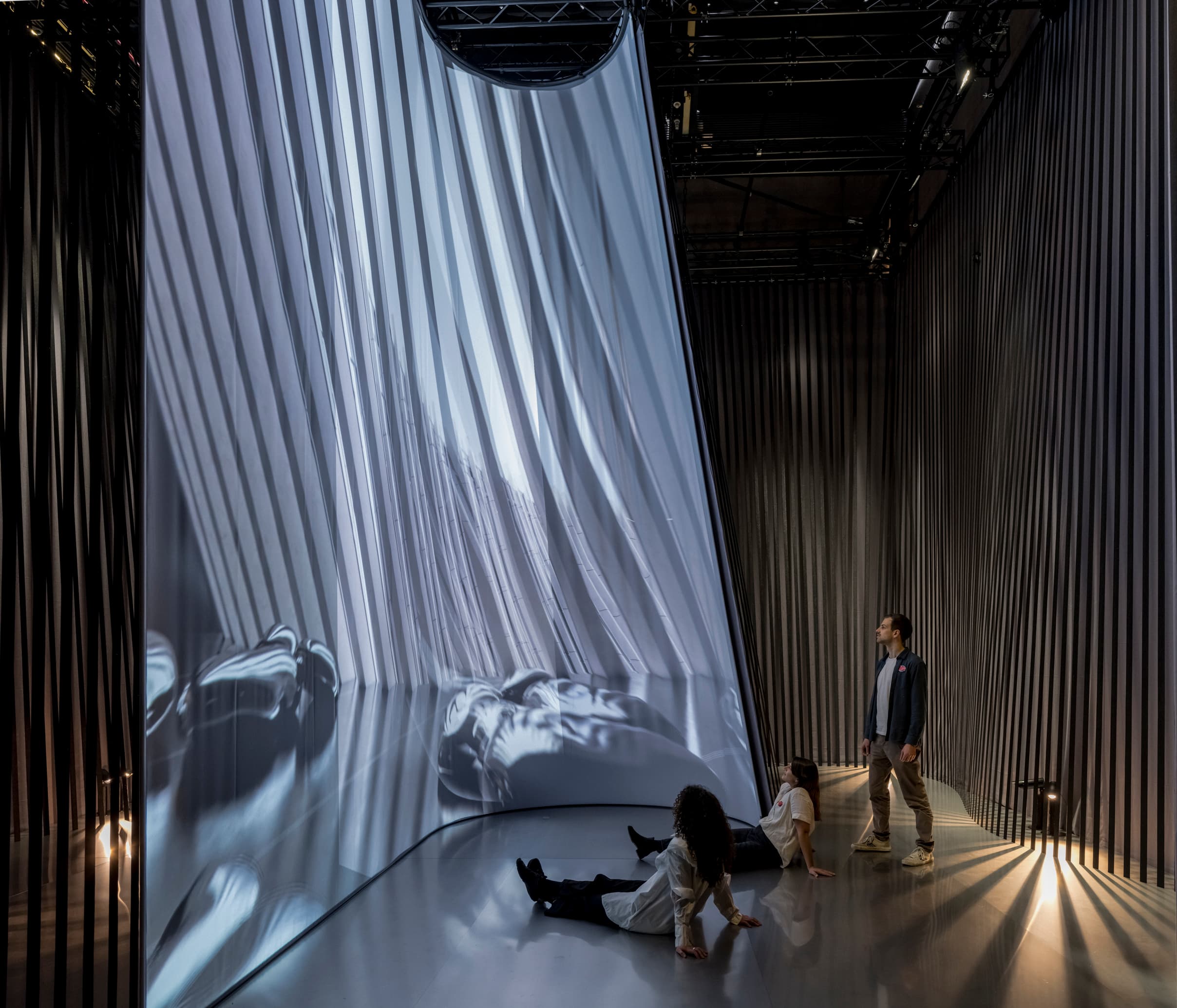 Fra det øjeblik du trådte ind i udstillingen, blev du omsluttet af seks store installationer, som var designet til at vække dine sanser. Vi spurgte: hvordan føles rummet, når du bevæger dig langsomt eller hurtigt, lukker øjnene eller blot stopper op et øjeblik? Oplevelsen blev understøttet af et lydunivers skabt af trioen Mesmer og lysdesign af Jesper Kongshaug.