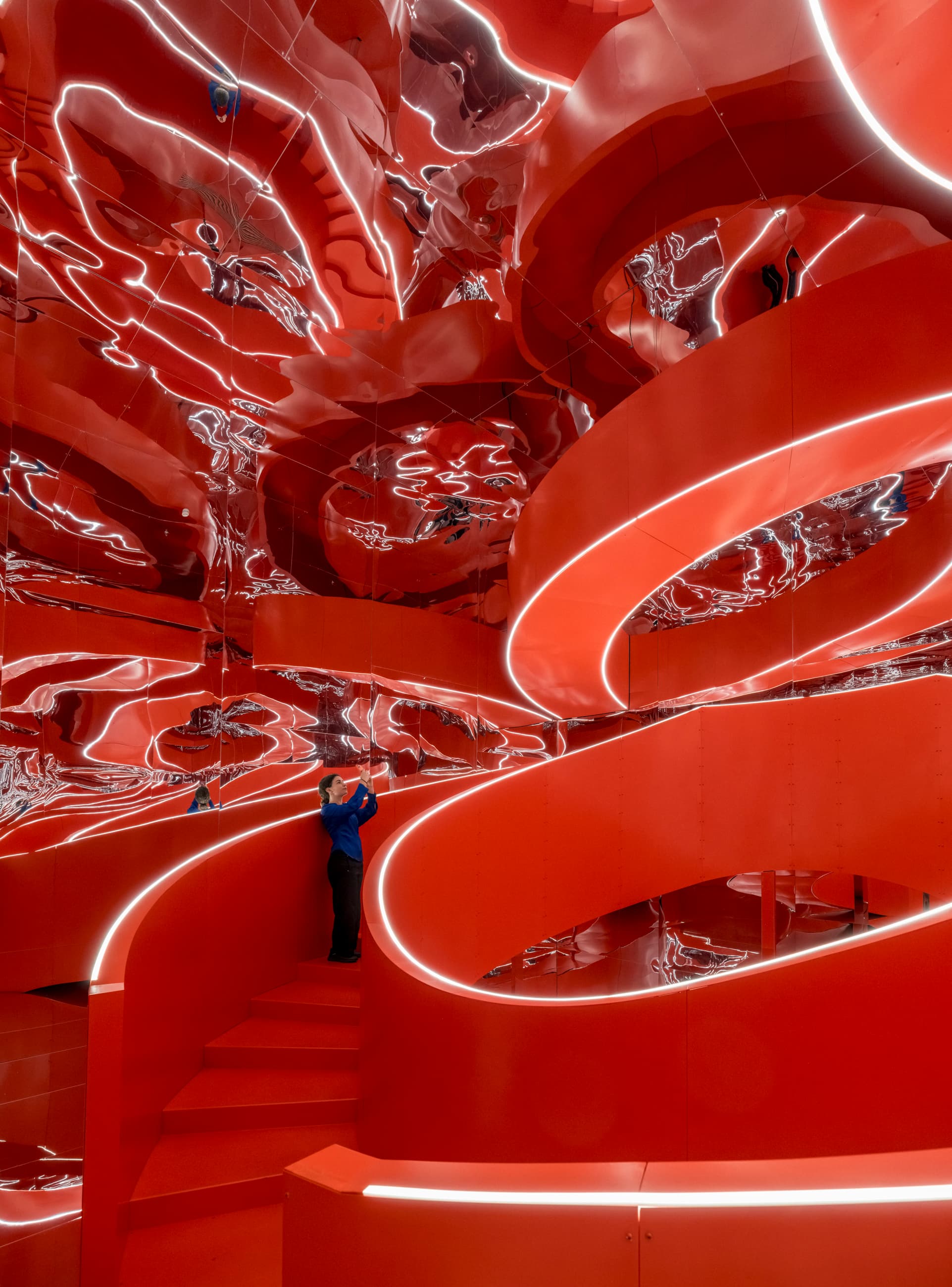 I udstillingen kunne du opleve, hvordan en trappe ikke kun forbandt forskellige niveauer, men også skabte et møde mellem dig og de andre, der besøgte udstillingen. Du kunne prøve, hvordan det er at være omfavnet af en træ-kokon, der både beroliger og beskytter. Eller du kunne tage ophold foran den store kalejdoskopiske spejlvæg, der forvandlede dit spejlbillede og omgivelserne til prismelignende mønstre.