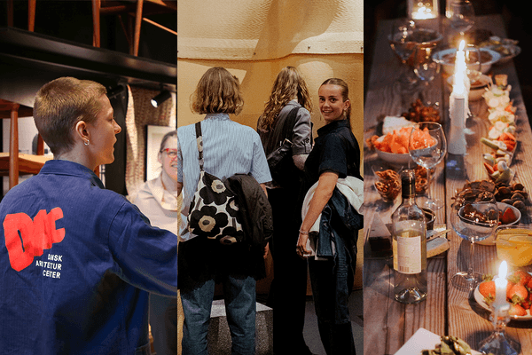 Du bestemmer selv, om du vil med på rundvisningen, eller hellere gå på opdagelse i udstillingerne i dit eget tempo. Kl. 19.00 serverer vi en lækker sæsonbaseret vegetarisk middag ved langborde i vores café med enestående udsigt over Inderhavnen. Som en ekstra gave får du DACs egen arkitekturguide med hjem – til at fortsætte opdagelserne i byen.