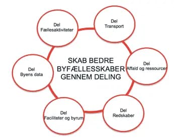 - Engagere danskerne bredt i at dele mere, og i at forløse deleøkonomiens potentialer for at skabe bæredygtig vækst og nye kvaliteter i byerne og i lokalsamfundet.