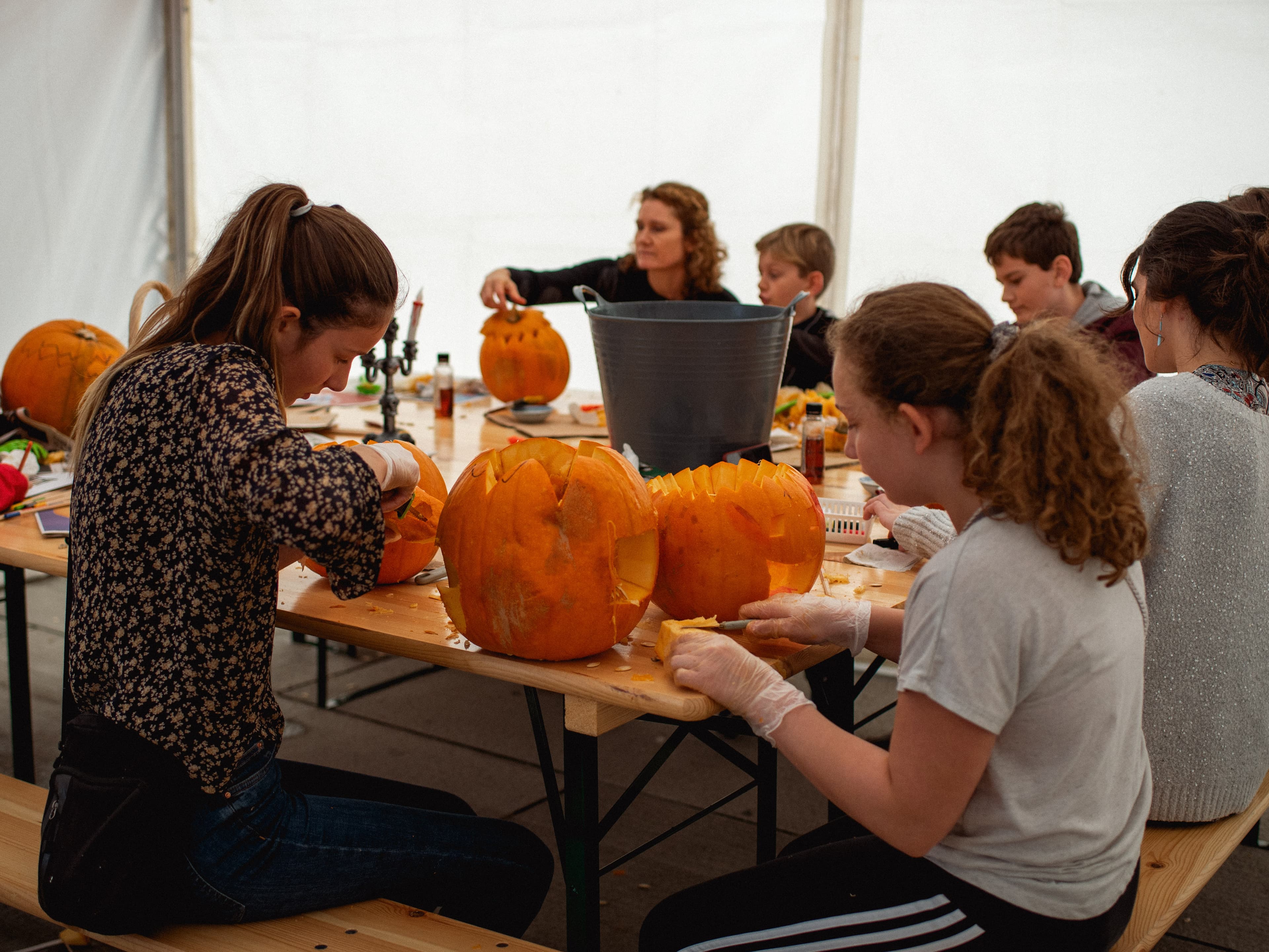 Kom forbi det store telt på Bryghuspladsen ved BLOX og vær med til at skære græskarlygter til Halloween, klippe, tegne, lave kastanjedyr. Det er også muligt at blive ansigtsmalet.