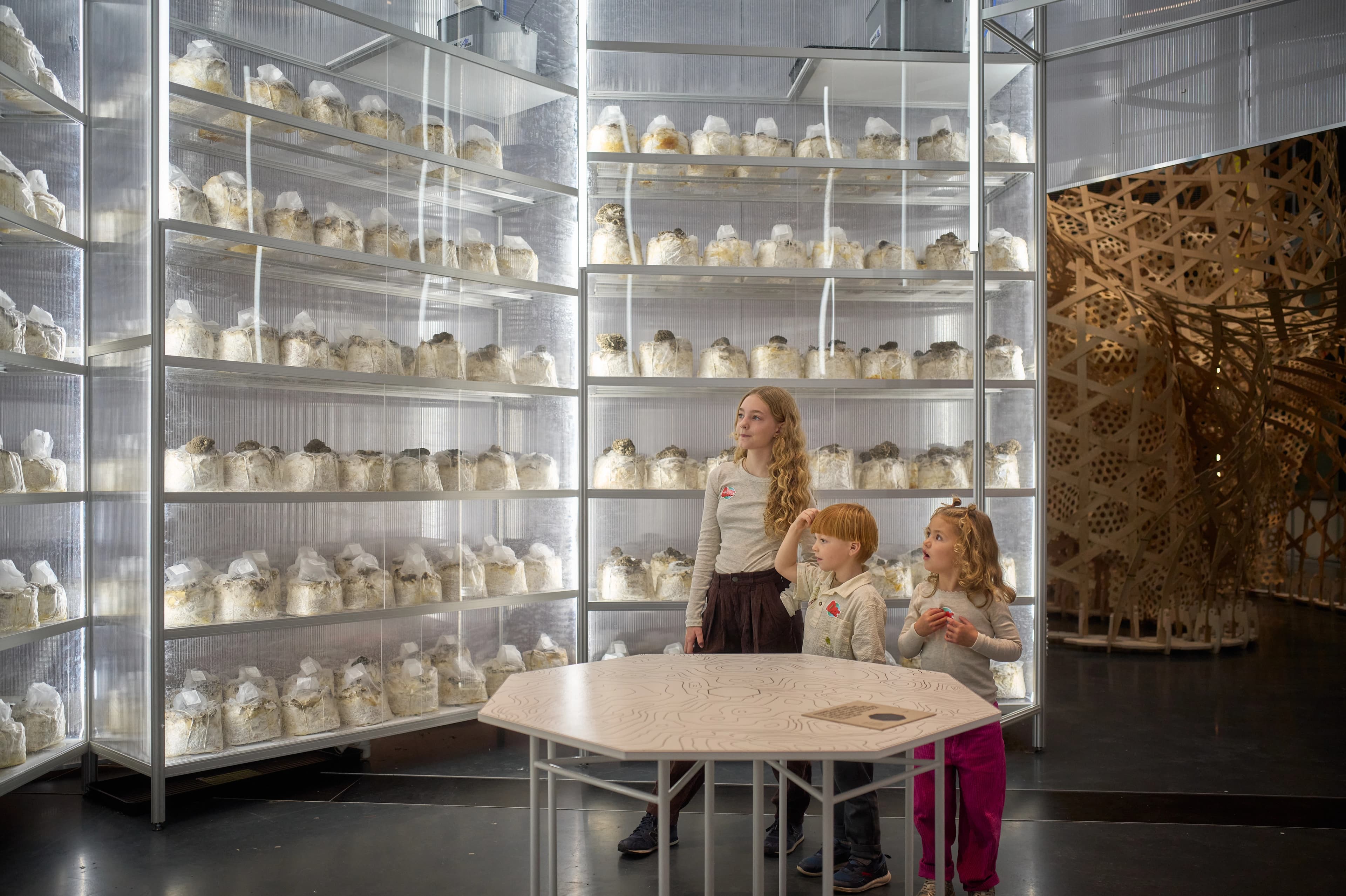 Age of Nature explores the relationship between humans and nature. Experience trees on artificial respiration, mushrooms grown in towers and facades that provide homes for birds and insects. The exhibition offers wild visions of the future and sensual suggestions on how new knowledge and technology can unite architecture and nature for the benefit of all life on earth.