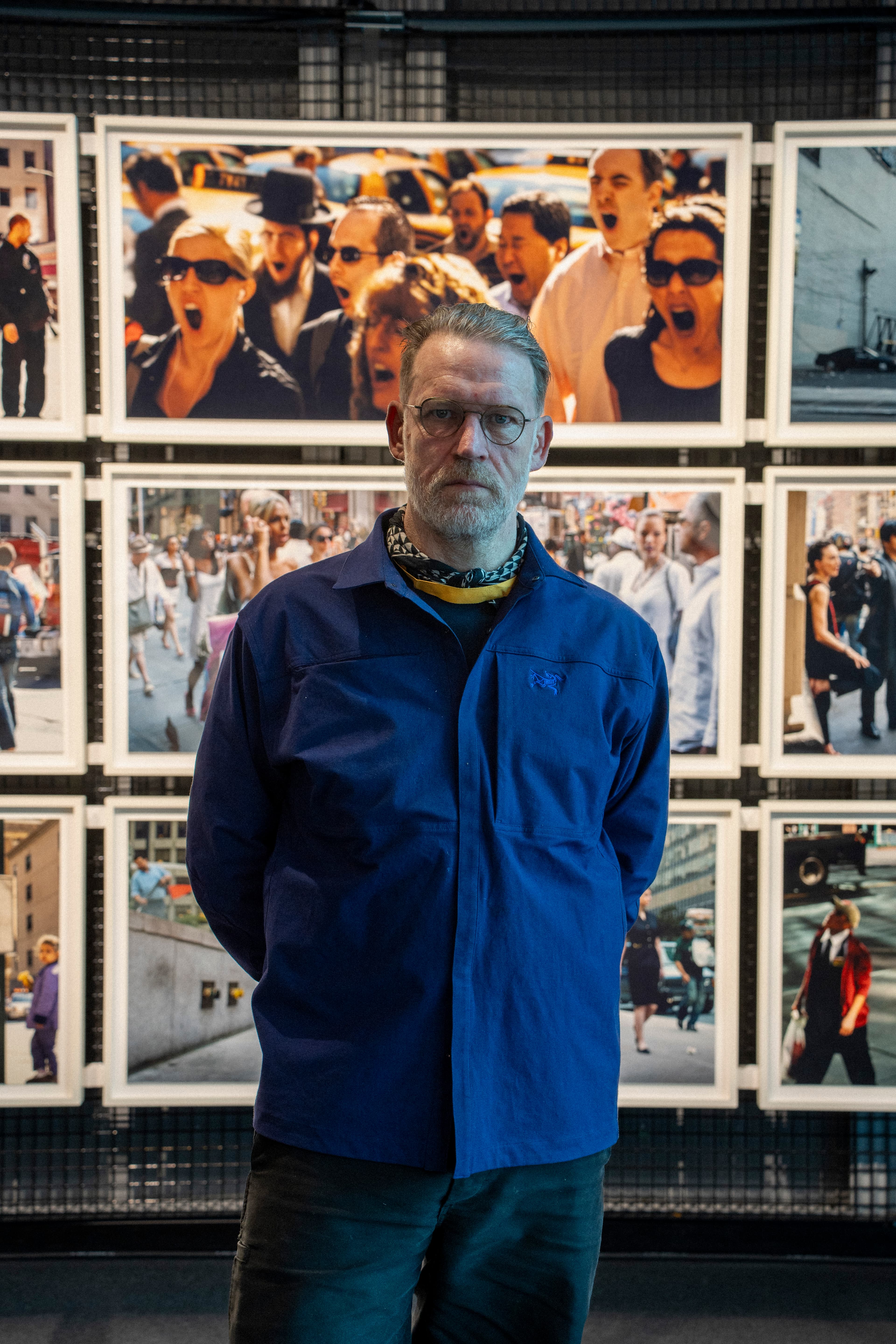 Peter Funch took thousands of photographs at selected locations in New York, later identifying distinct patterns within the images. These patterns were then digitally combined into a single final image. The individuals featured in these pictures were all at the same place, though never at the same time.
