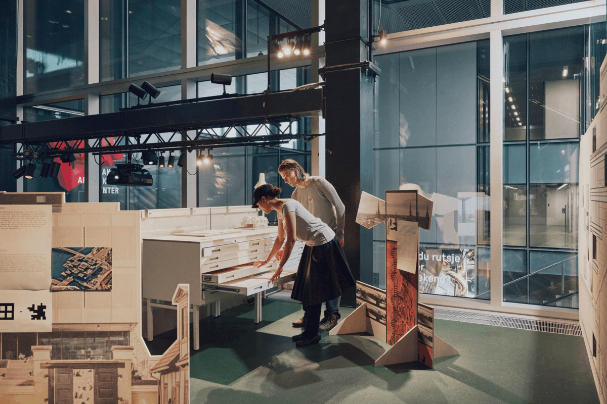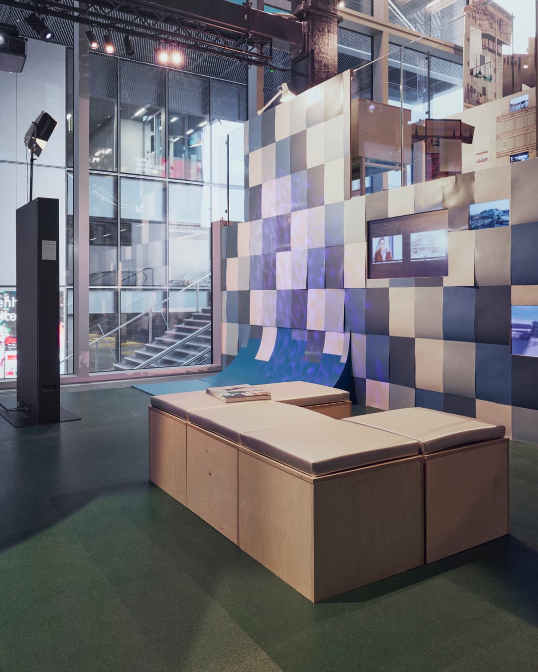 The exhibition contains a large amount of reading material. Font sizes generally follow standard guidelines, though in some places smaller text is used, which may be harder to read. Lighting primarily consists of spotlights combined with natural daylight, which may affect guests who are sensitive to light. In addition, some neon tubes are installed that create reflections on the floor, which may be disturbing for light-sensitive visitors. Background music and sound effects play throughout the exhibition, and the films Public Space at Notre Dame and Liam Young include loud sounds. Visitors sensitive to noise are advised to bring earplugs.