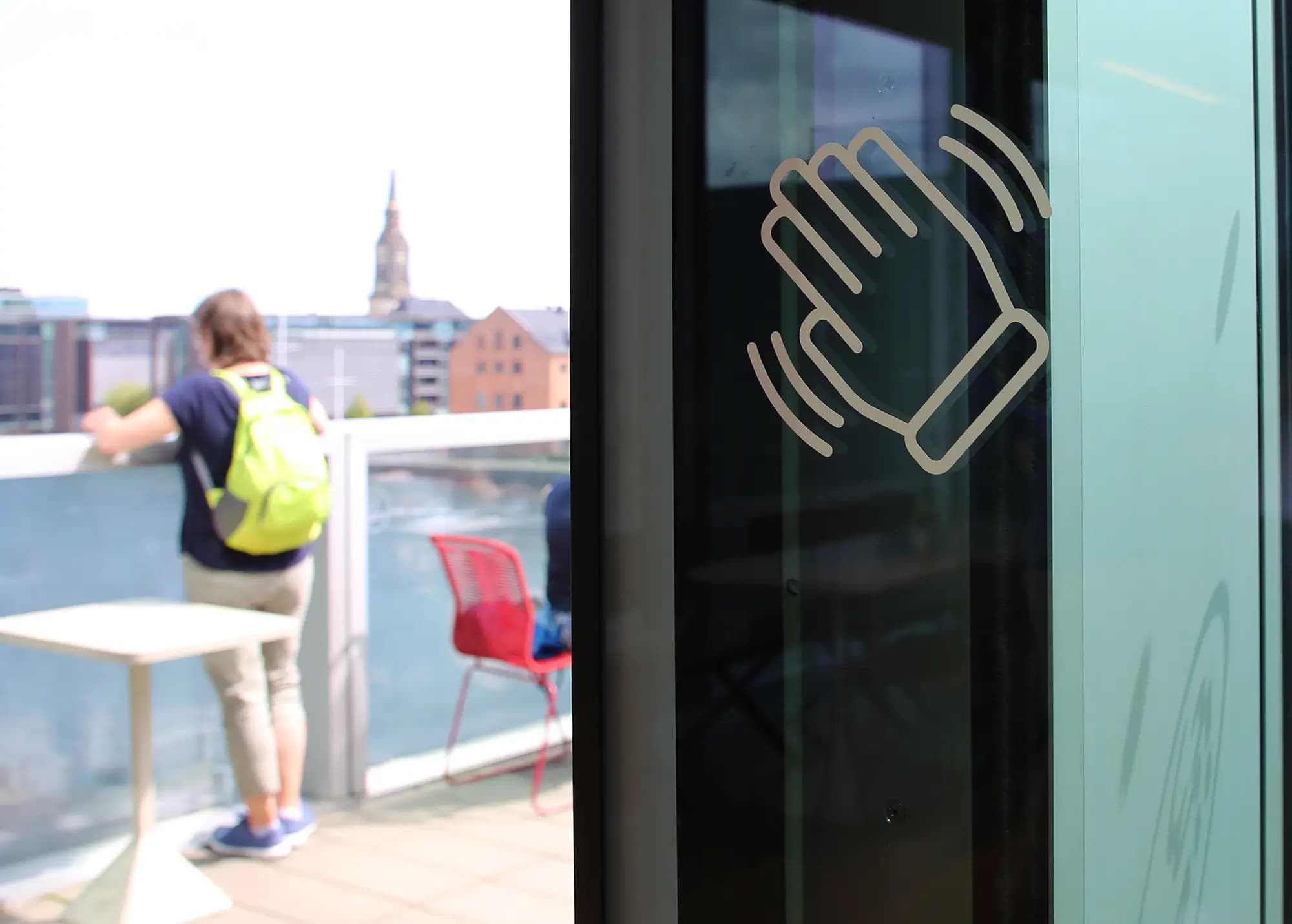 There is no tactile guidance inside Danish Architecture Center. There are solid floors throughout without slopes, cobblestones or other loose surfaces. The BLOX building was designed by the Dutch architects, OMA, and it can be difficult for many to find their way around on the first visit. There are many stairways, but almost all areas can be accessed by elevator. Read more in the following. When you arrive, you will be given a map of the building at the ticket counter.