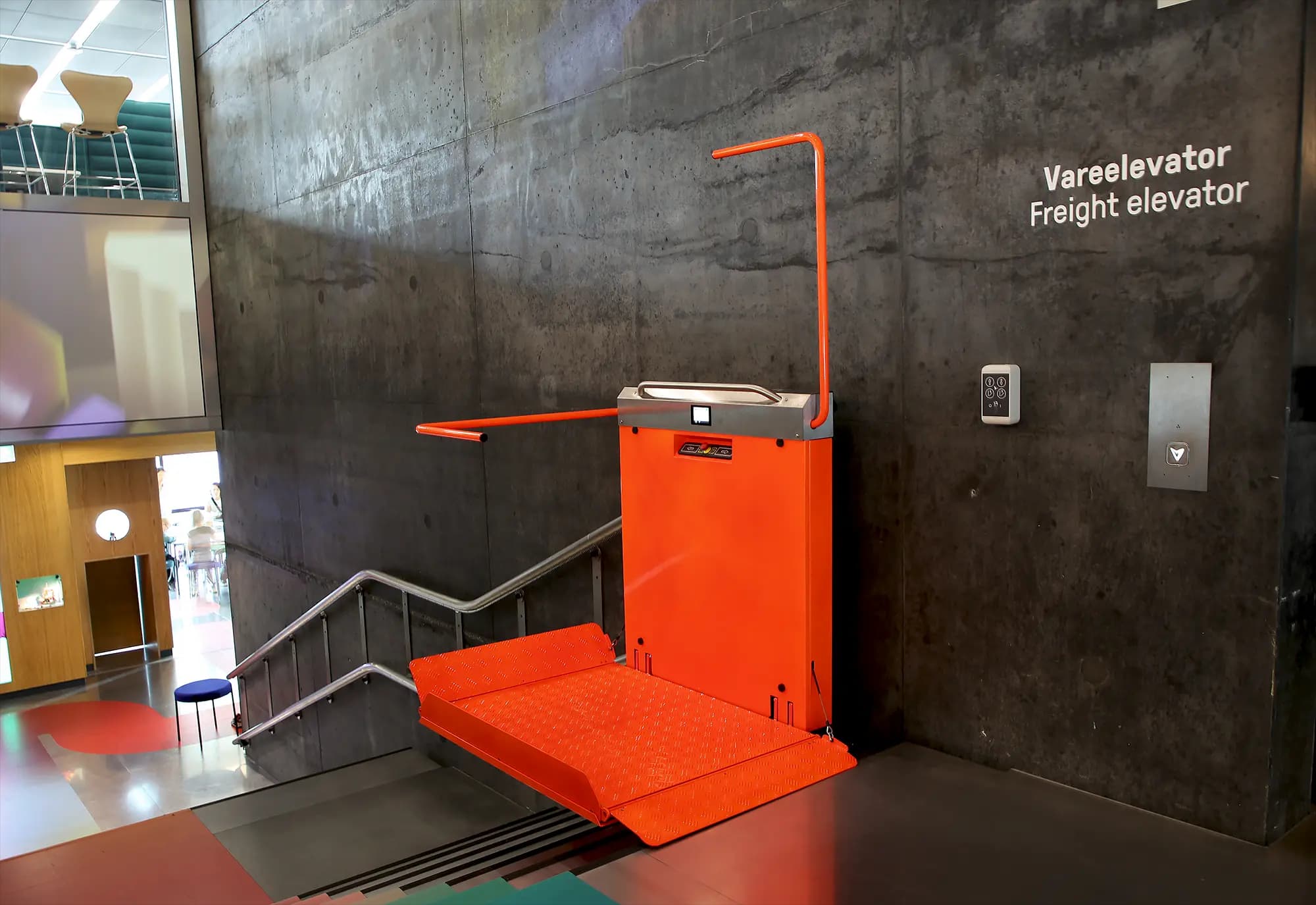 During your visit you can use the elevators to get around the building. The guest elevator inside DAC is located in DAC Design Shop, and it provides access to both exhibition rooms as well DAC Café and The Hall. There is clear signage in the elevator. Note that there is no Braille in the elevator. Our children and schools area, the Educatorium has wheelchair and baby-carriage access with a lifting platform. The size of the lift is 100 cm. x 77 cm.