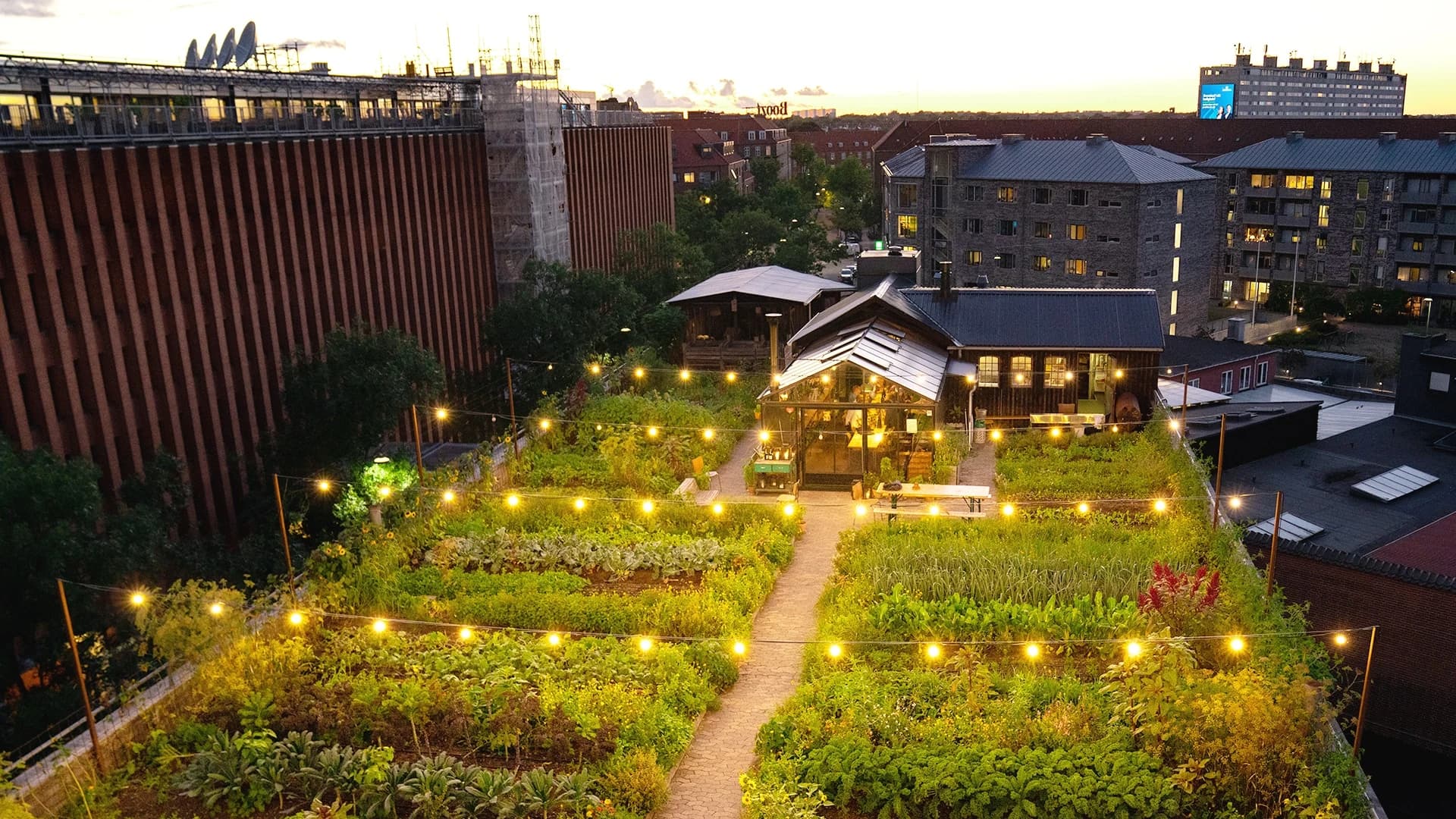 ØsterGro is an urban organic roof farm in outer Østerbro. A roof filled with soil, vegetables, bees, chickens, rabbits, earthworms, and composting. In addition to offering a green sanctuary, ØsterGro also provides a nice view of the so-called climate neighborhood in Østerbro – Copenhagen’s first climate-adapted district. On the roof, you will also find the restaurant Gro Spiseri, which offers an organic and informal dining experience in a small greenhouse on the roof.