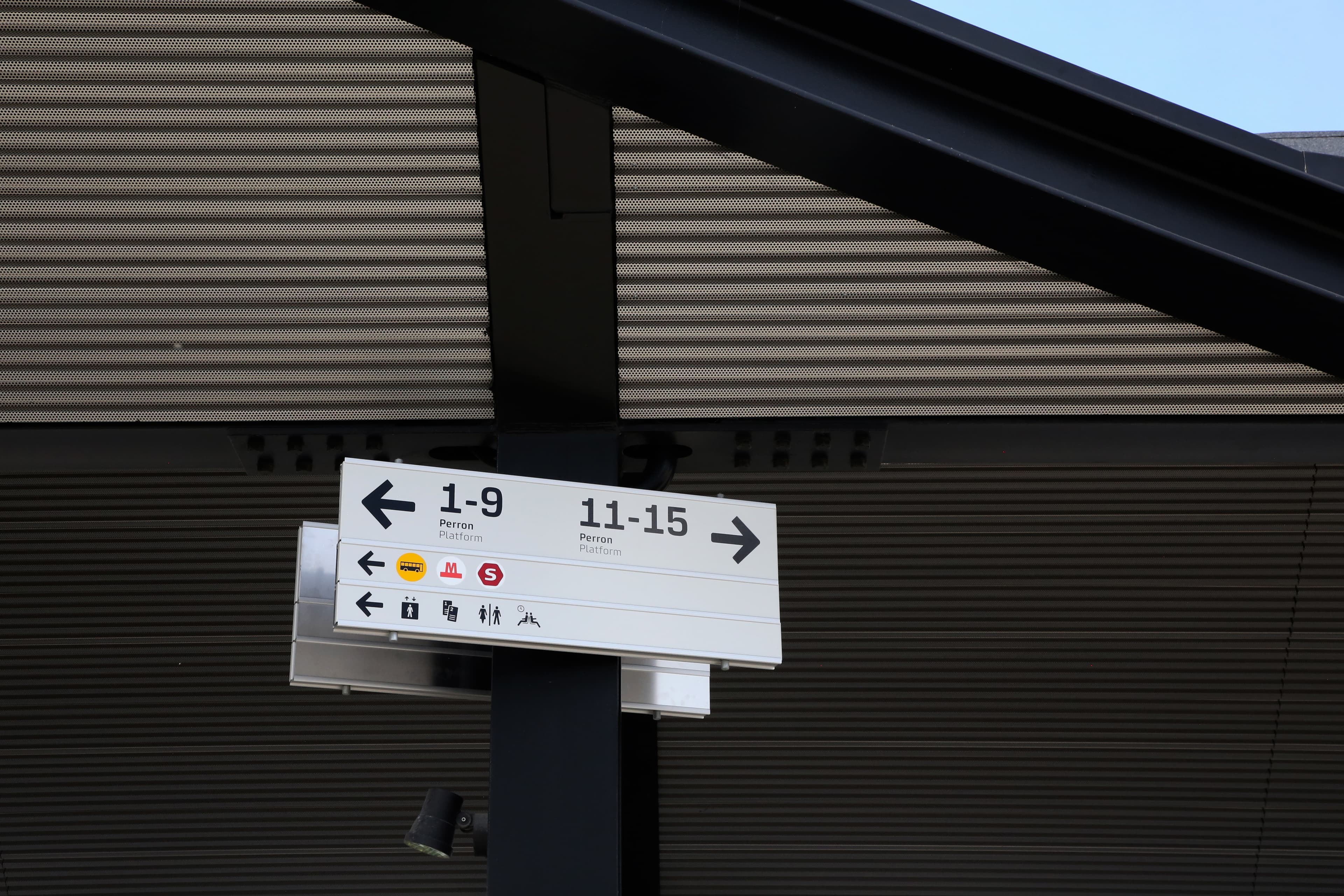 The terminal zigzags over several bus platforms and is meant to evoke the old railway workshop buildings. Here, under the black roof, passengers are provided with standing and seating options, lighting, and information displayed on signs and screens. The terminal also offers bicycle parking, a waiting area with wooden benches, restrooms, and a kiosk.