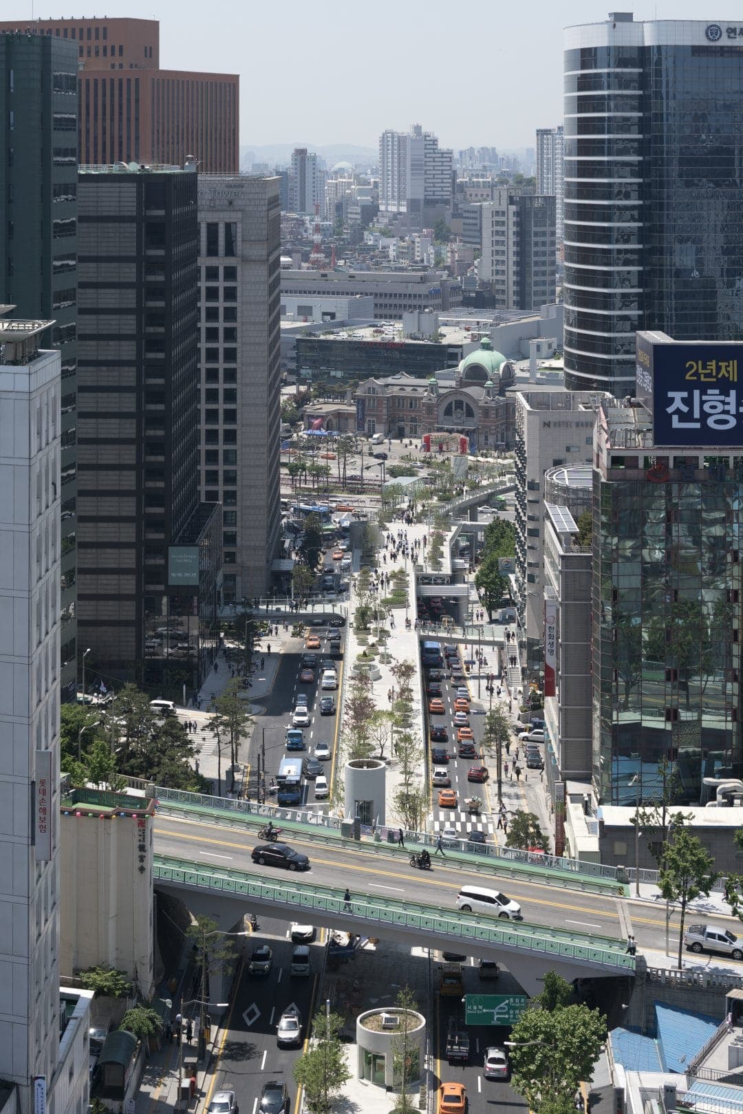 Seoullo, translating to ‘Seoul Street’ in Korean, is not the city’s first project to attempt this, with the Cheonggyecheon Stream acting as an exceptional precedent for the successful transformation of vehicular infrastructure into public space — a sunken park running for many kilometers through the city.