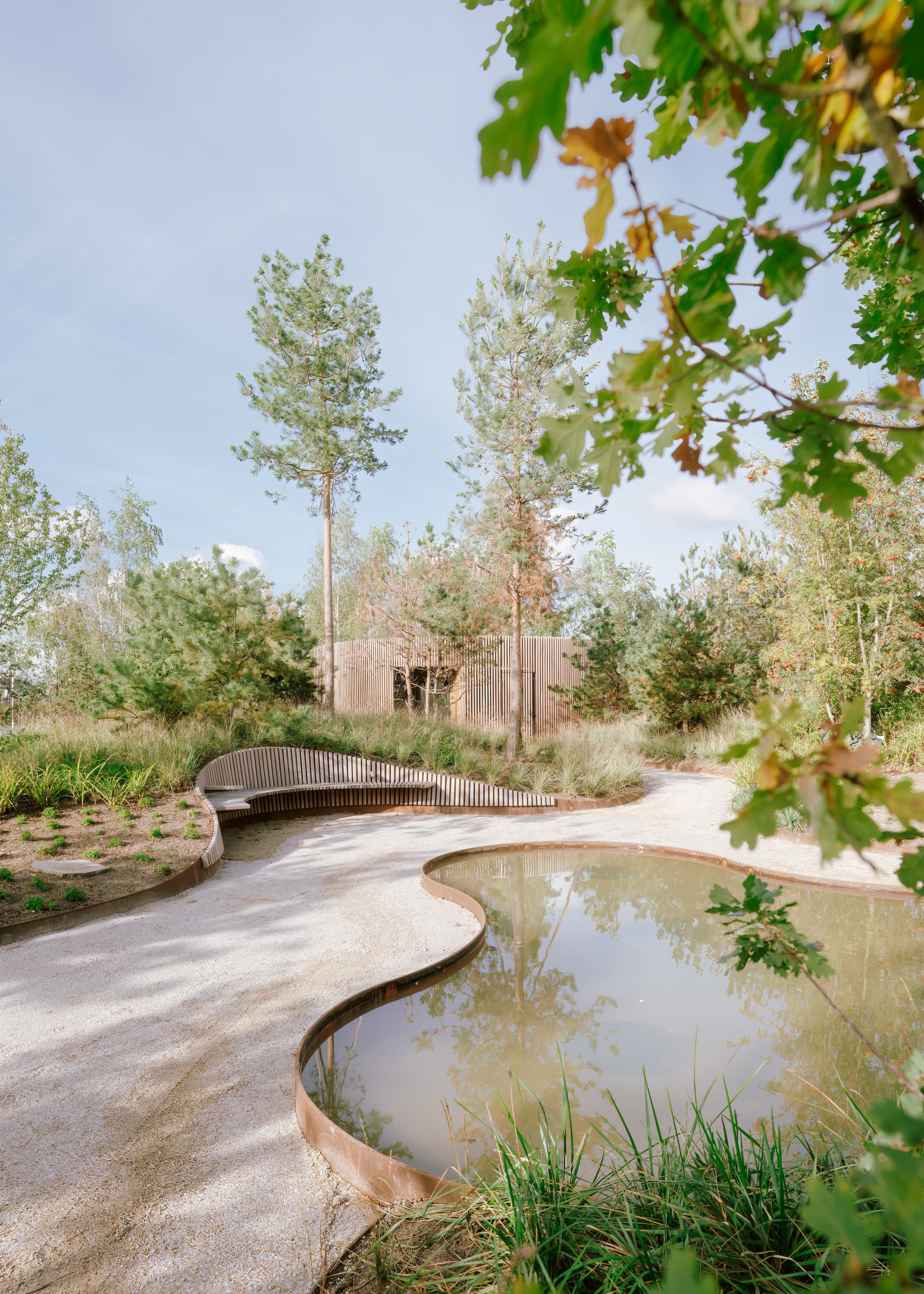 Within the park, there are small niches, pockets, and defined views that invite visitors to linger, alone or in small groups. The idea is for visitors to “hide themselves” for a while before returning to the city's bustling daily life.