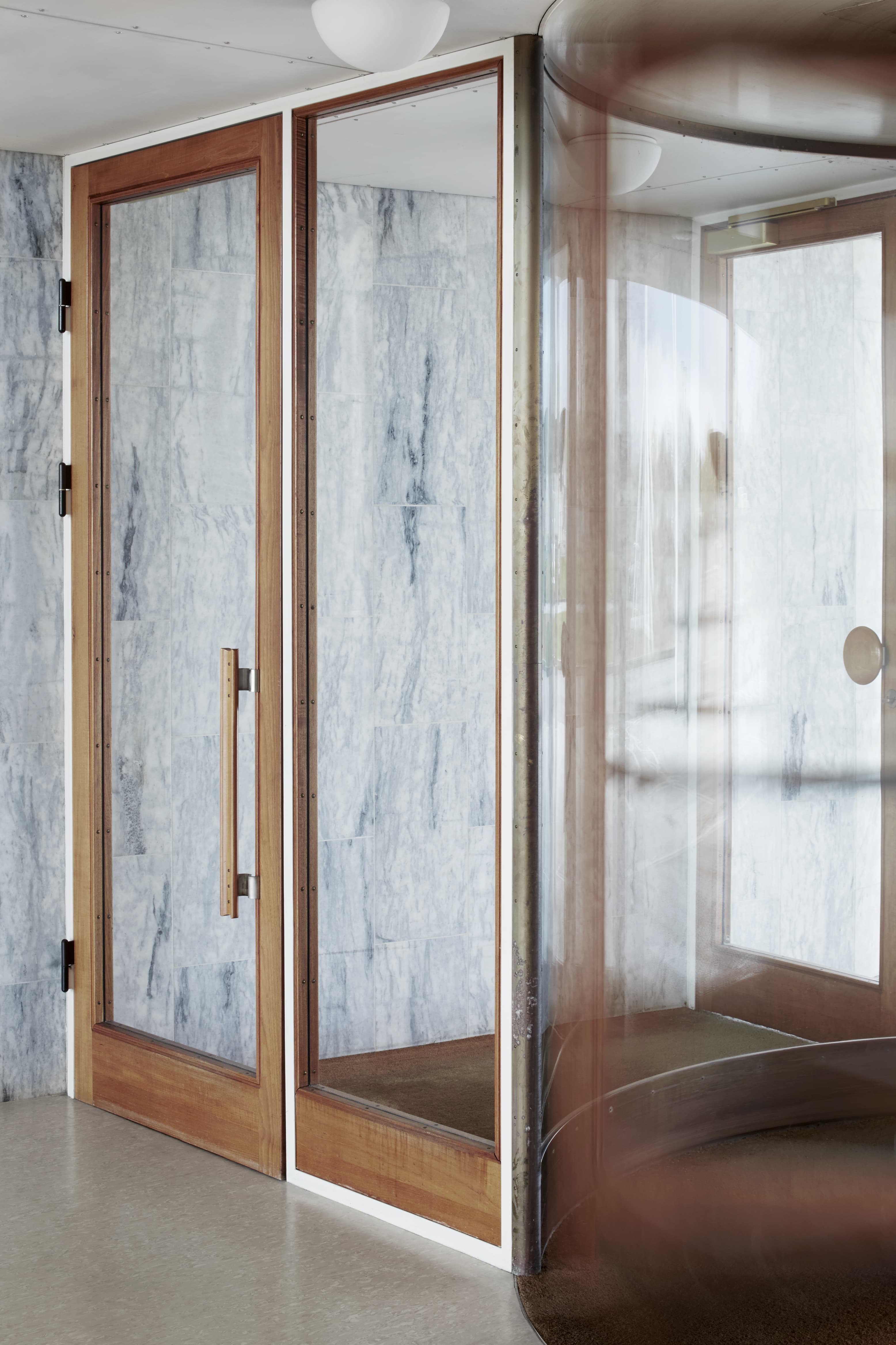 At its new address, the terminal was restored and repurposed in collaboration with Vilhelm Lauritzen Architects. In relation to its original location, the building had been turned 180 degrees. Once south-facing, the facade now faced north. The distinctive awnings were therefore moved to the entrance side. The building is now listed as a national heritage site and is used for exhibitions, events and to receive special guests at the airport.