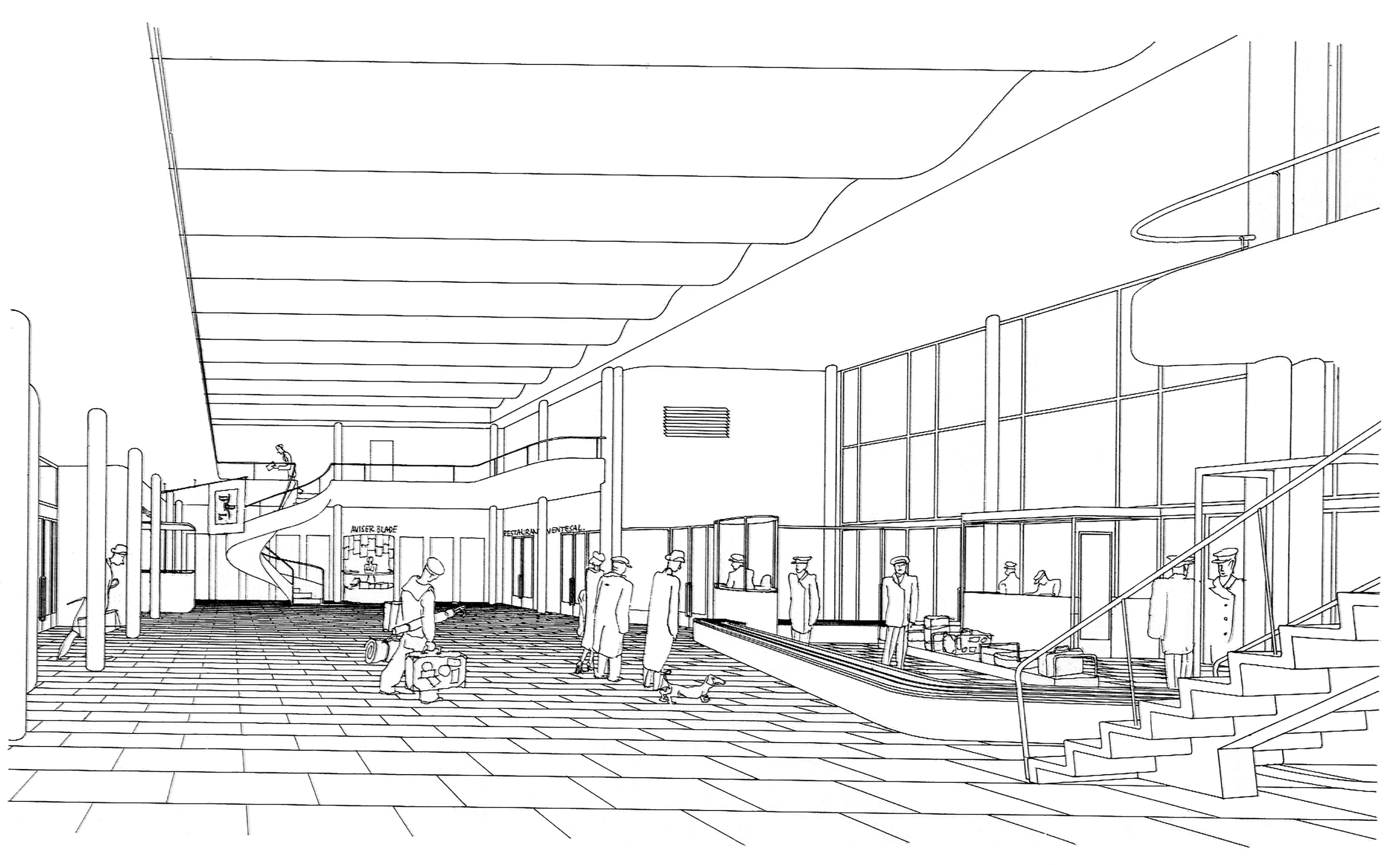 The terminal designed by Vilhelm Lauritzen was groundbreaking in a day when architecture focused more on the building’s shape, ornamentation and embellishments. In contrast, Vilhelm Lauritzen focused on the function of the building, dividing the terminal into two sides: entrances and street traffic along the building on the “landside” and air traffic and gates on the “airside”. This division has since become the norm – and to this day it still forms the foundation of most airport designs.