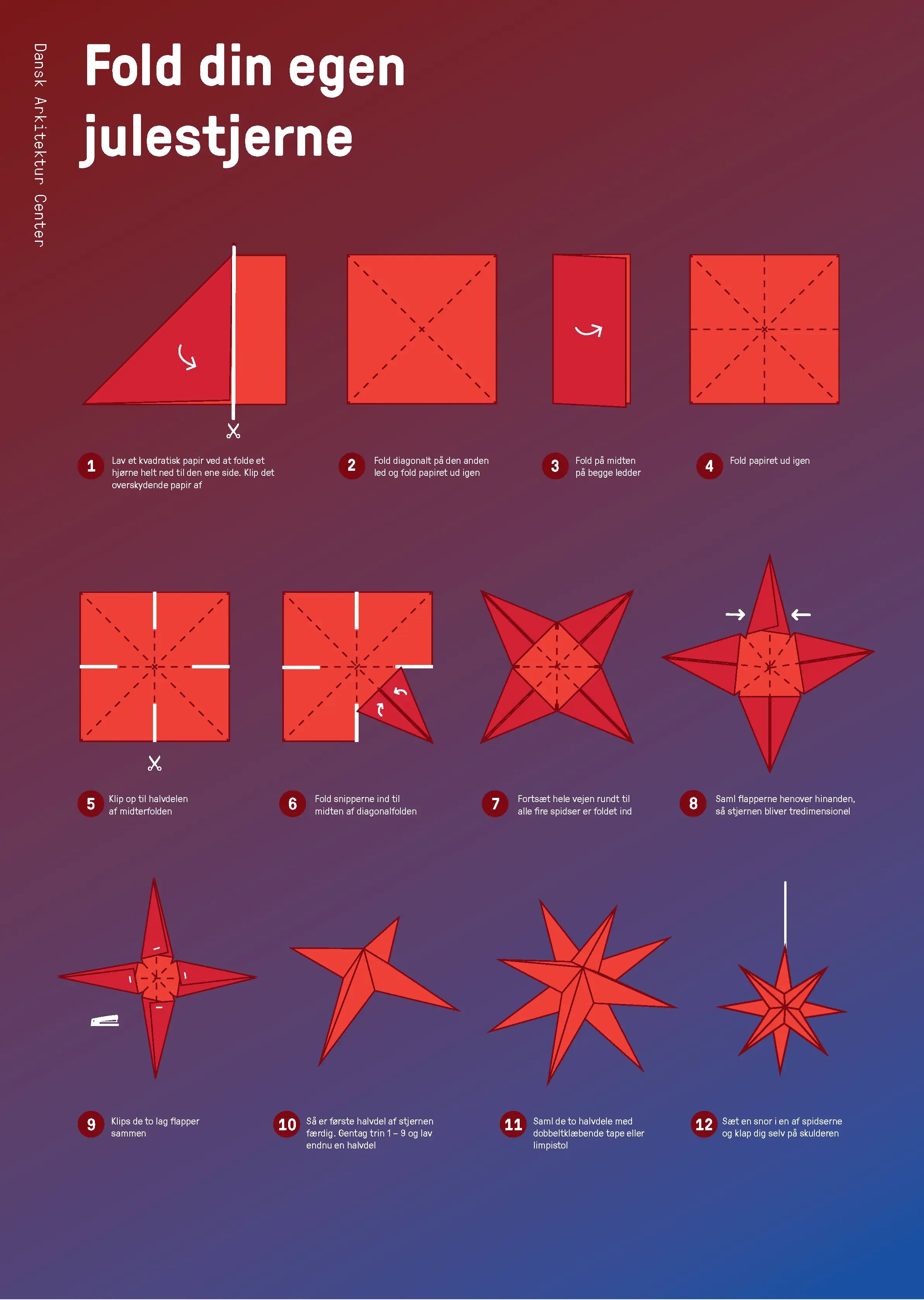 Her kan du følge Dansk Arkitektur Centers guide til at folde din egen julestjerne i papir.