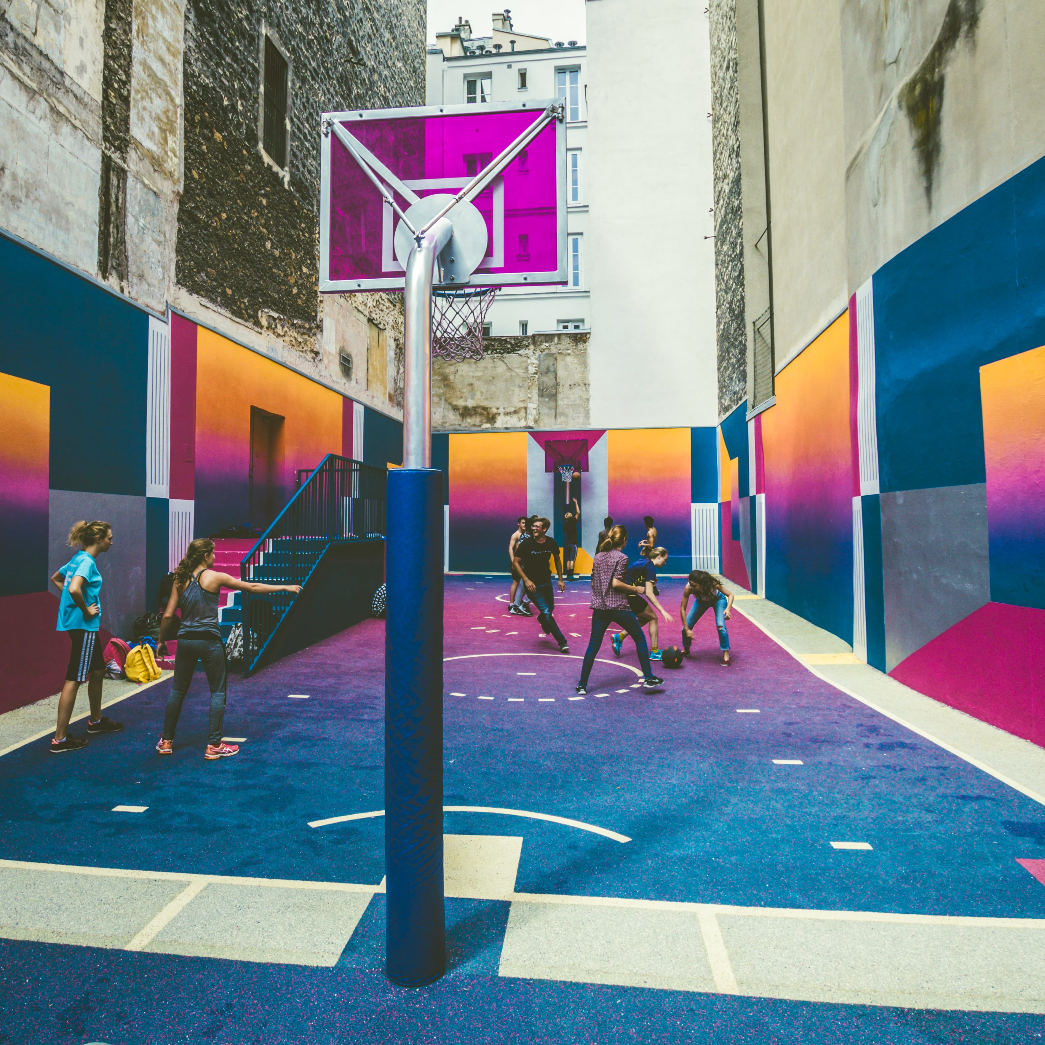 Streetbasket er gået fra hvide streger på grå asfalt til et lærred af farver og mønstre. Fra Paris til København peger en ny generation af basketbaner på, hvordan farver åbner byrummet for nye fællesskaber.