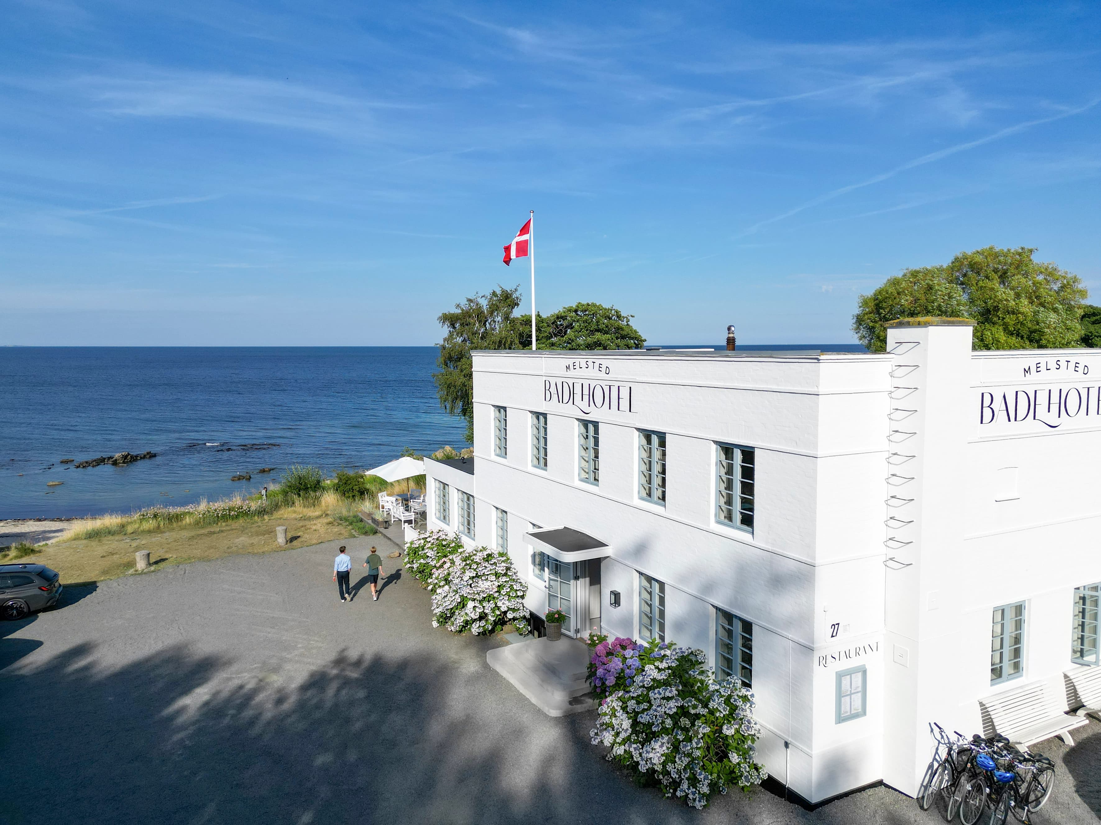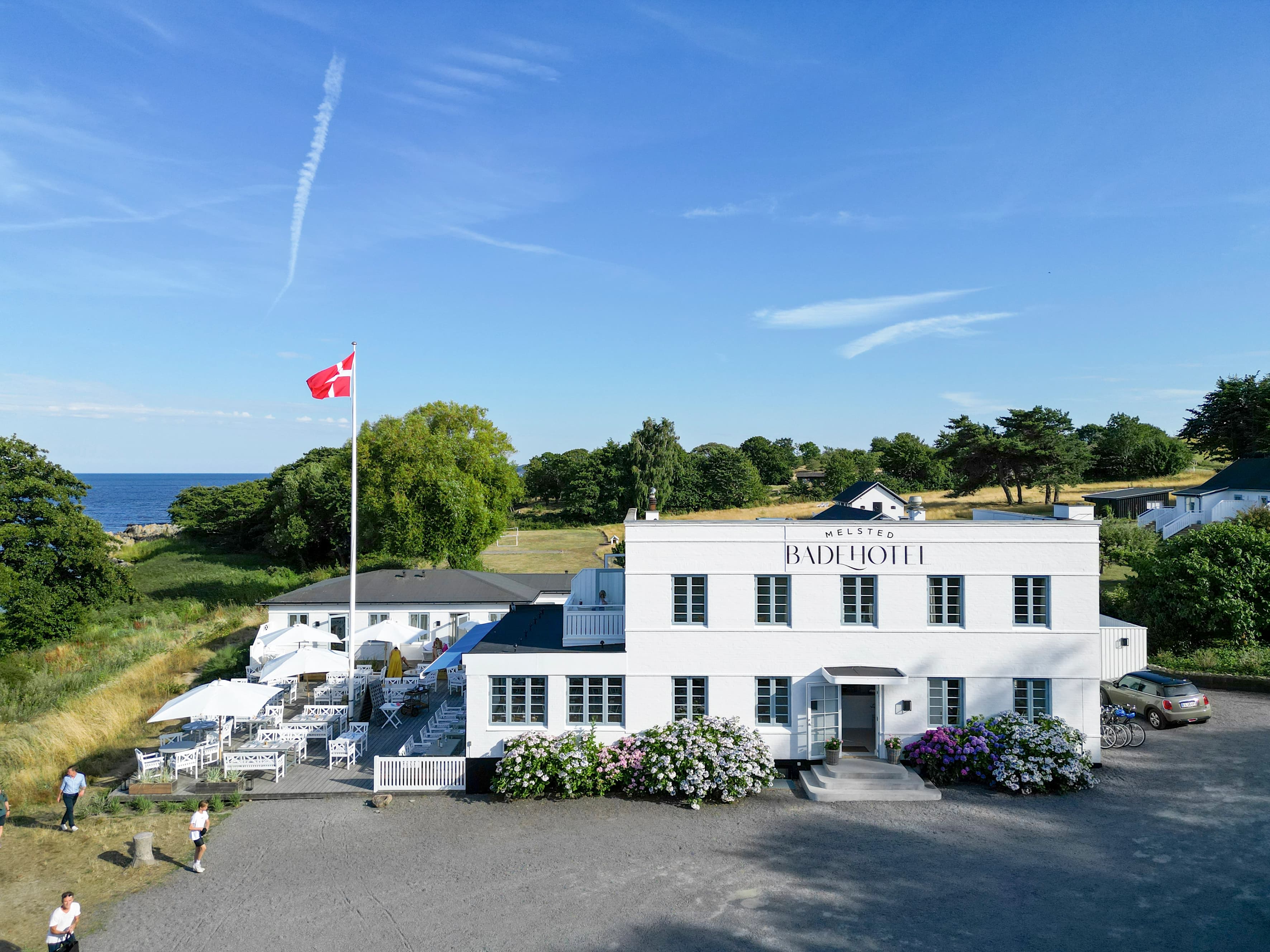 Med fødderne næsten i sandet og front mod Østersøens blå horisont ligger Melsted Badehotel som et hvidt funkisikon på Bornholms kyst. Bygningen fra 1932 sender hilsner til Arne Jacobsens strandpark i Klampenborg med sit flade tag og hvidpudsede facade. Badehotellet blev i 2024 kåret til bedste badehotel på Sjælland og øerne af Opdag Danmark.