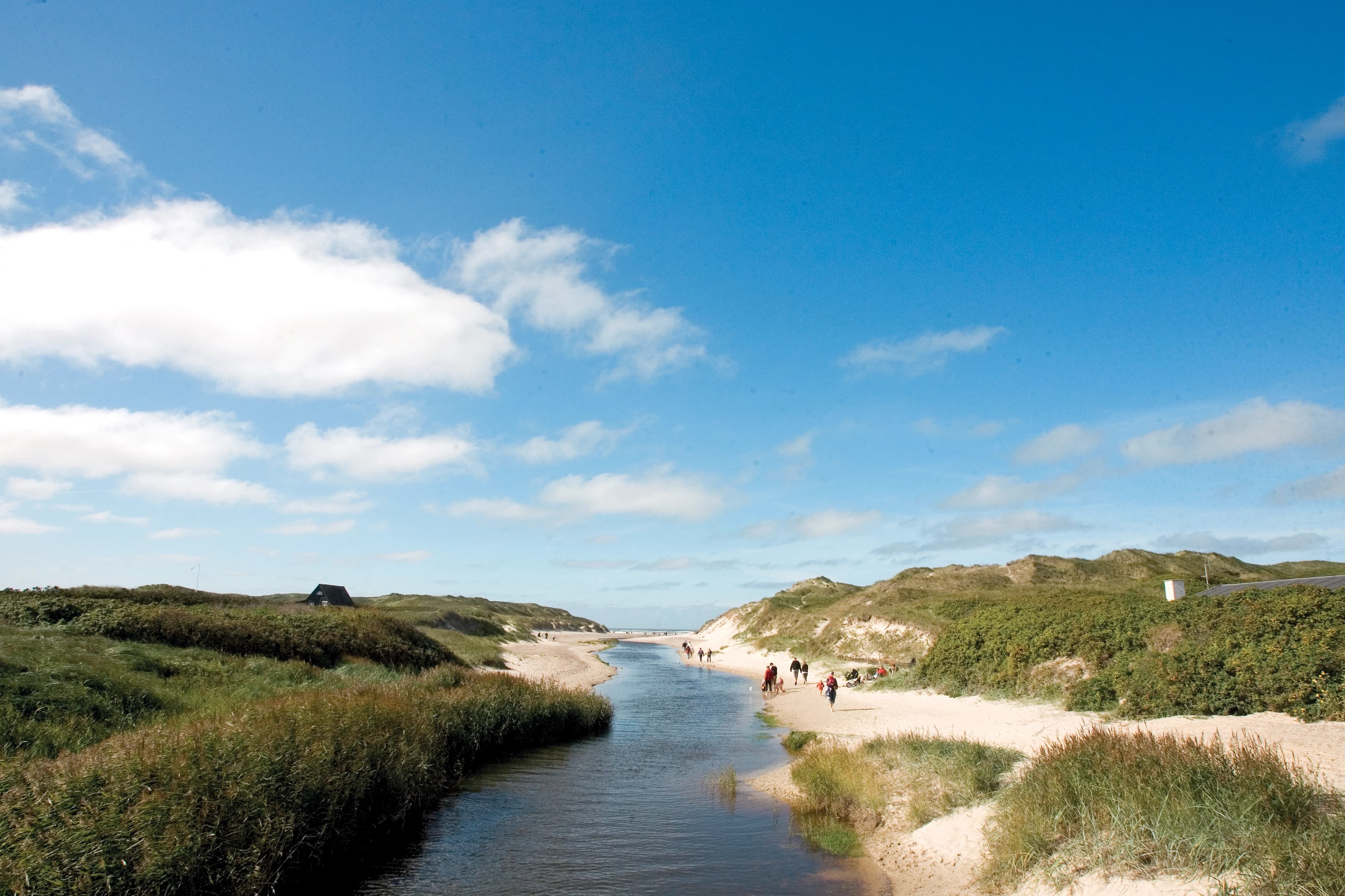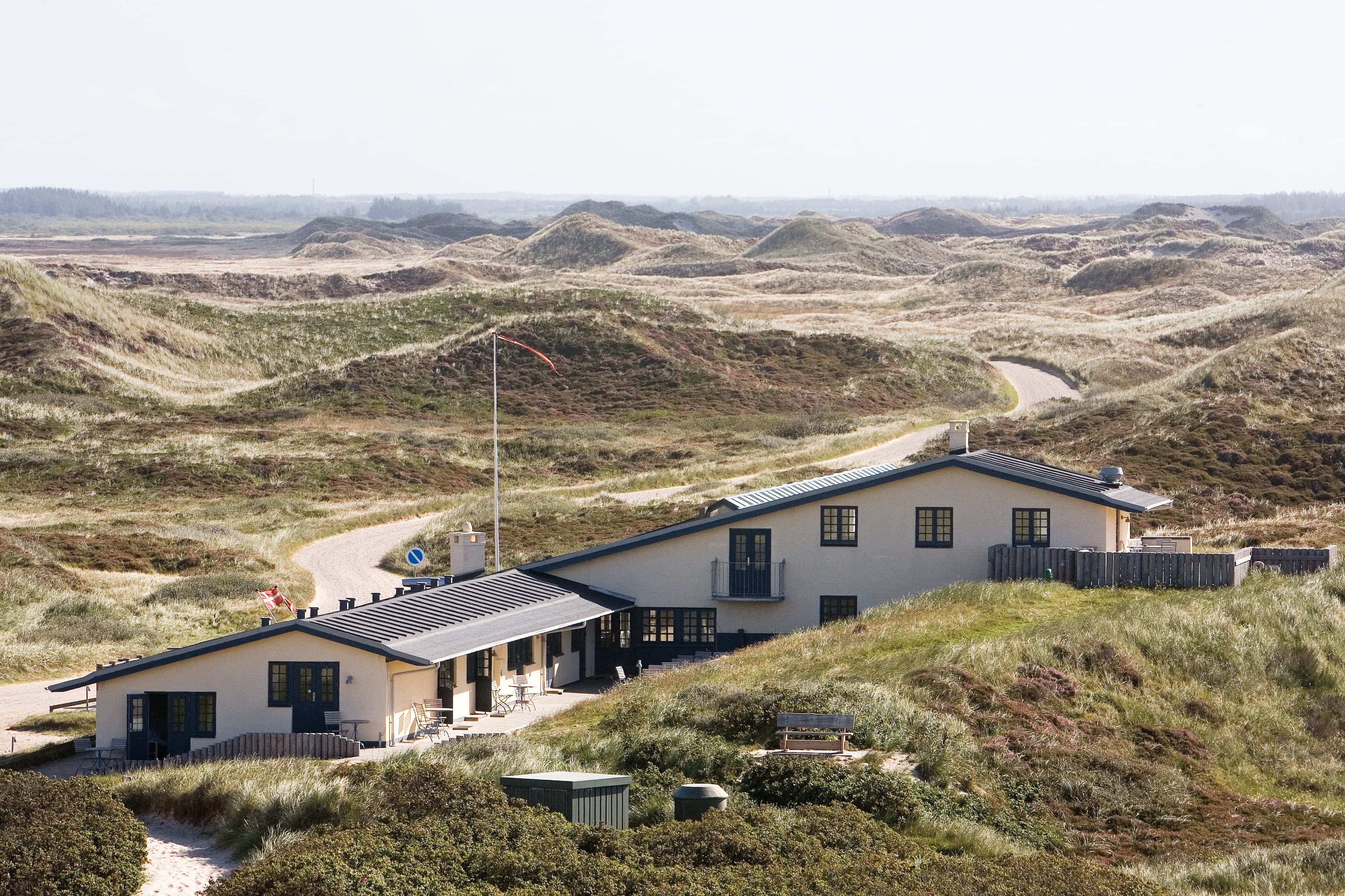 Ved foden af klitterne, hvor heden møder havet, ligger Henne Mølle Å Badehotel næsten skjult i det bølgende landskab. Badehotellet blev tegnet af Poul Henningsen i 1936 med visionen om at skabe et roligt tilflugtssted – et sted, hvor bygningen skulle underordne sig landskabet, ikke omvendt. Badehotellet bugter sig i landskabet med sin gule sandfarvede facade og blå vinduer.