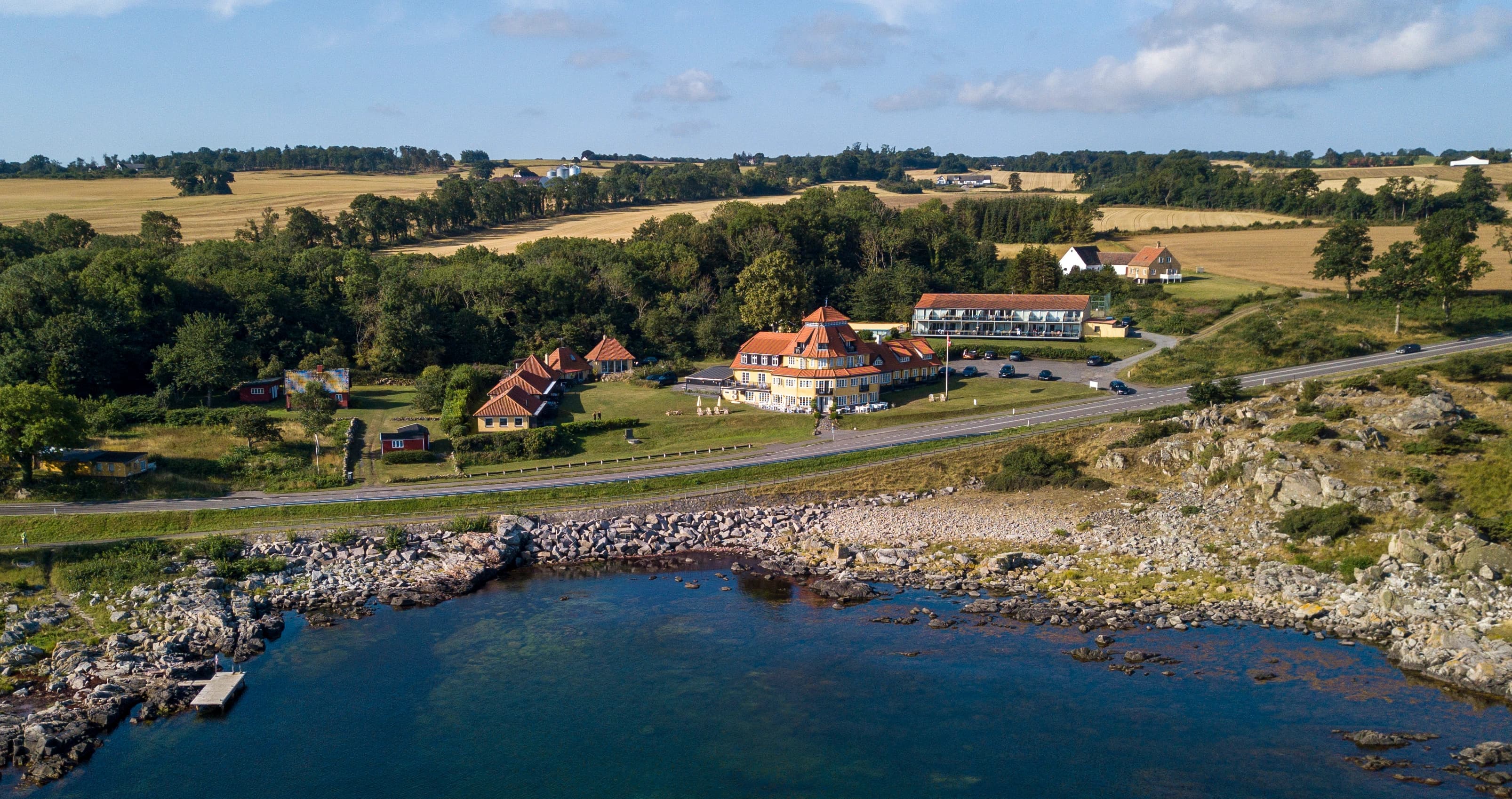 På en klippegrund mellem Tejn og Gudhjem finder du Stammershalle Badehotel – et tidligere kurhotel fra 1911, der stadig emmer af idyl. Badehotellet tårner op med sine klassiske røde teglsten og gule facade. Her får du det bedste fra Bornholm – solid granit under fødderne, Østersøens glitrende blå og duften af saltvand.