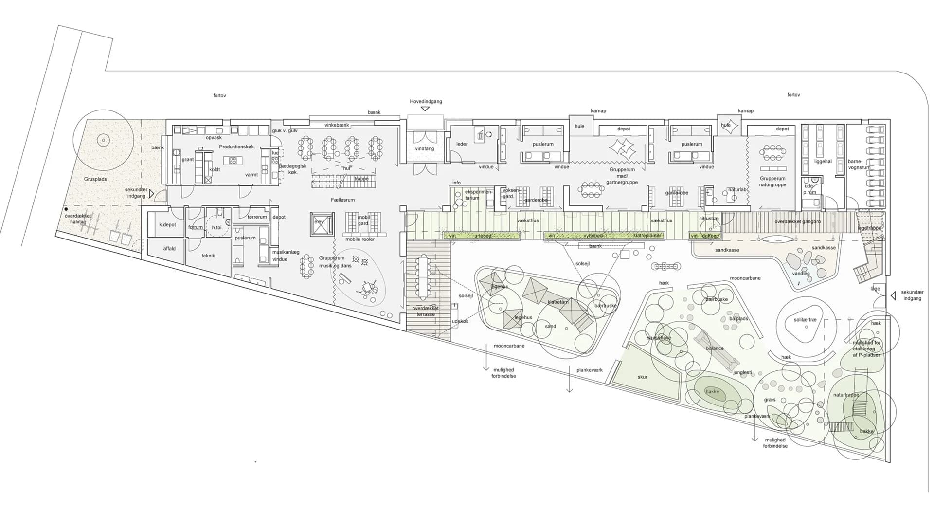Planen viser bygningens placering, adgangsforhold, vej- og stisystemer og forholdet til andre bygninger. Den kan samtidig vise udformningen af de nære omgivelser med beplantning, belægning, parkeringsforhold osv.