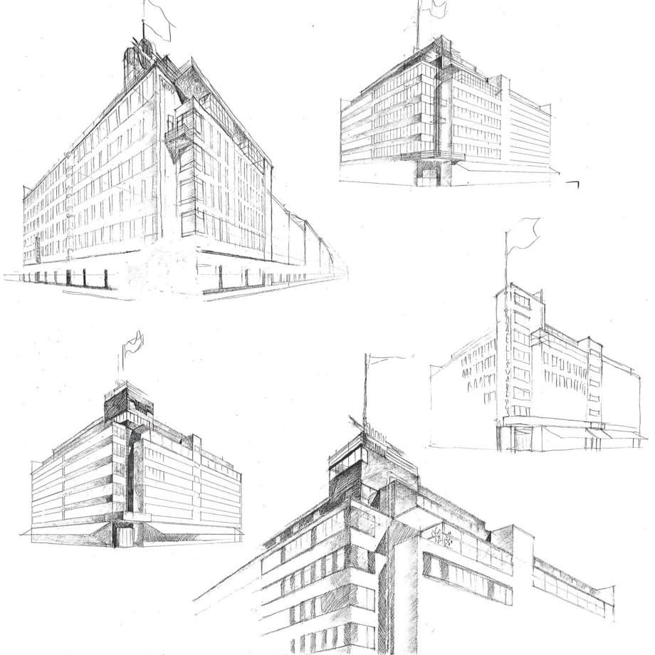 De fleste arkitekter bruger frihåndstegning i begyndelsen af designprocessen som en spontan og løst tegnet skitse til at fastholde de første idéer og indtryk. Kendt for sine dynamiske skitser var Erich Mendelsohn (1887-1953), der sammenfattede bygningens udtryk i skitsens form. Skitsen blev senere omsat til arbejdstegninger og blev den målestok, som de følgende projekteringer skulle holdes op imod.