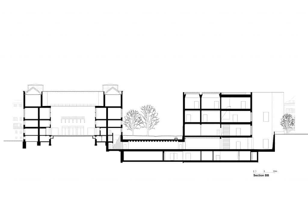 Målestoksforhold er angivet på arkitekttegningerne, så man kan studere bygningernes skala.
