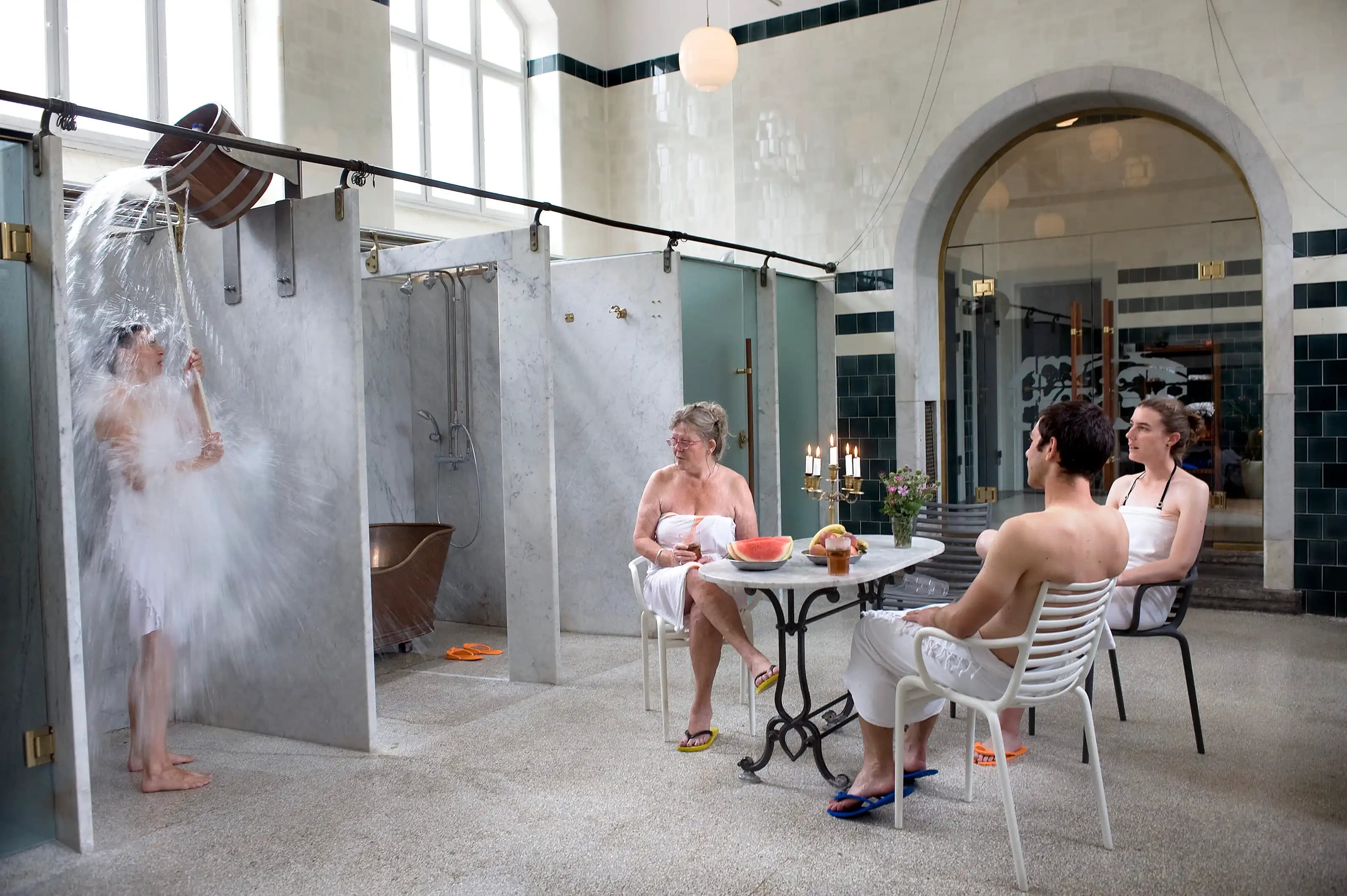 Og så er vi tilbage, hvor vi begyndte, nemlig hos den prustende middelklasse på saunaens øverste trin, som i højere grad end tidligere er dem, der bruger de transformerede bygninger, og vidner om, hvordan badeanstalterne har transformeret sig fra nødvendighed til moderne rammer for både velvære og socialt samvær.