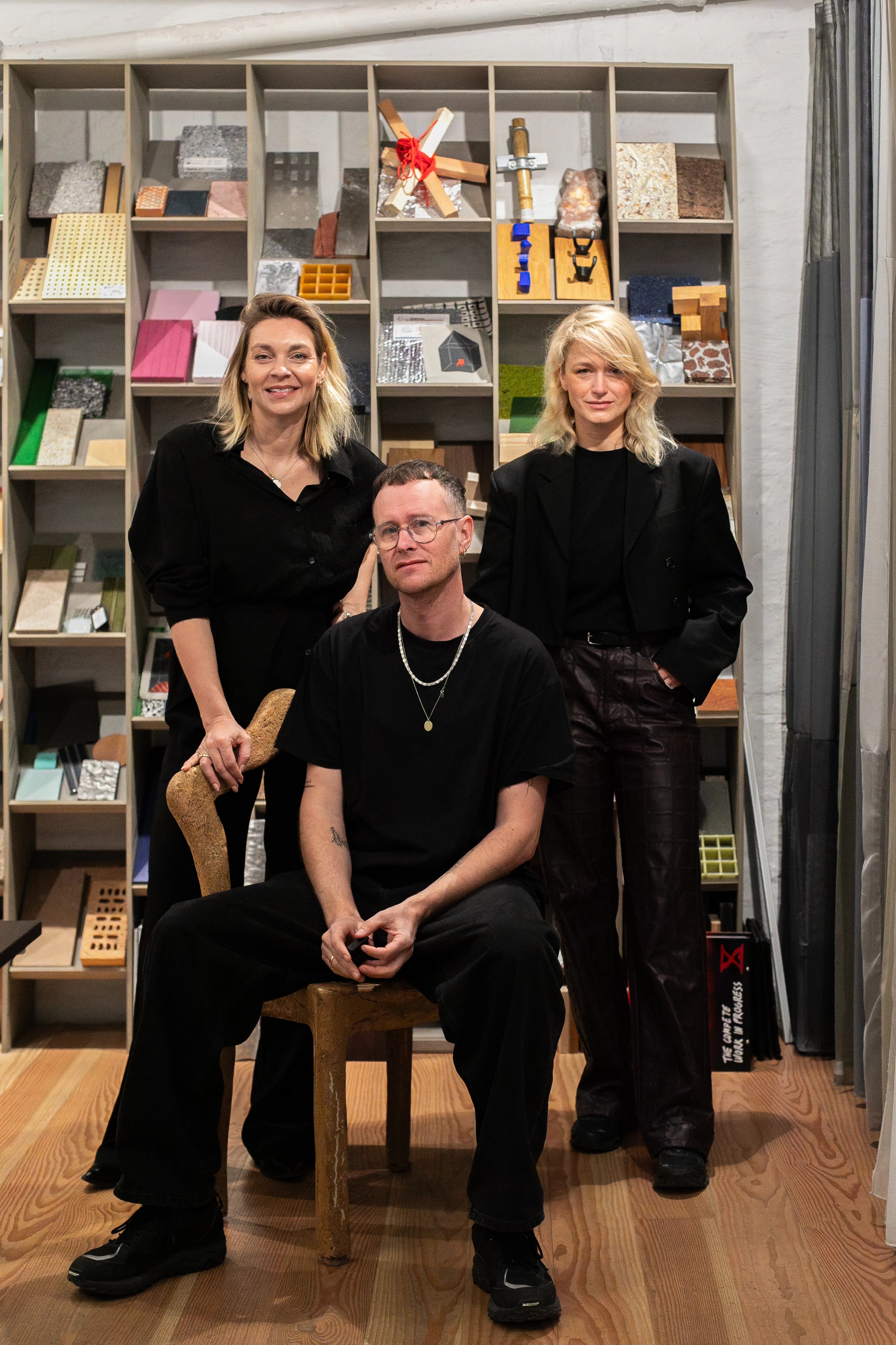 »Vi er meget optagede af, hvem modtageren er – det er nøglen til at skabe den bedste oplevelse. I vores studio har vi et materialebibliotek, en slags magasinvæg, hvor alle materialerne er synlige i rummet. Her finder vi ofte inspiration – vi elsker at eksperimentere med alt fra byggemarkedsmaterialer til håndværk og naturmaterialer som indfarvet tekstil, avocadosten eller nye materialer lavet af svampe.