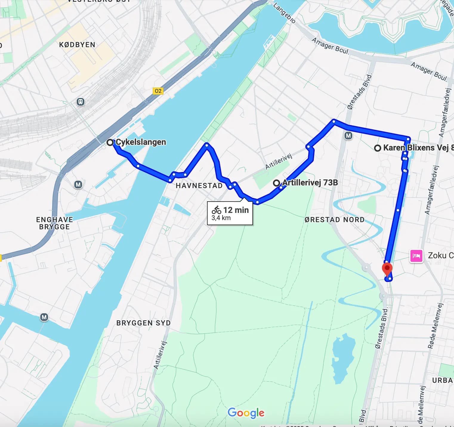 Rute: Cykelslangen, Amager Fælled, Københavns Universitet, DR-Byen
