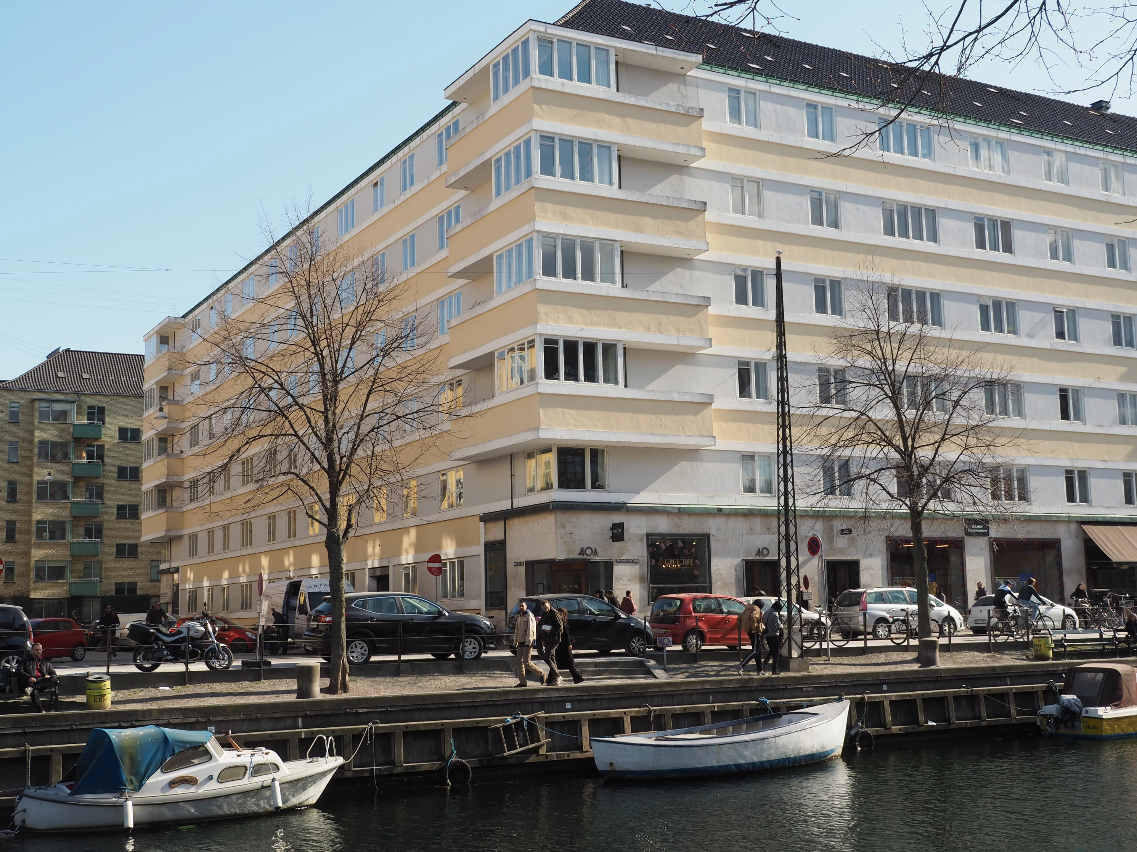 Edvard Thomsens byggeri Lagkagehuset fra 1930 er et godt eksempel på, hvordan man har pudset og malet murstenene, så det ser ud, som om huset er bygget af beton.