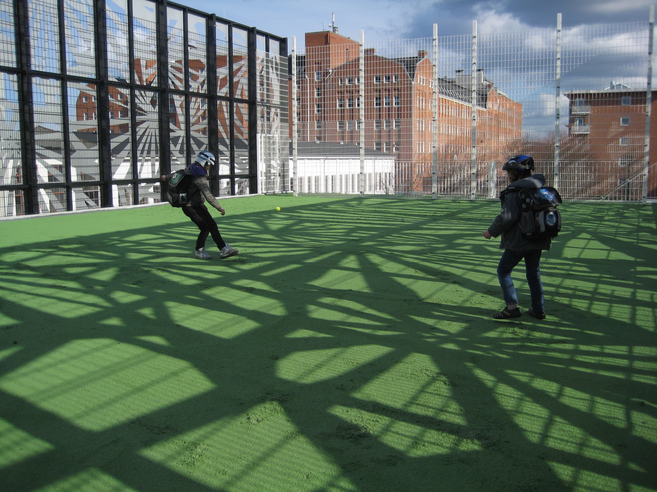 Her kan der spilles håndbold, fodbold og basketball med en storslået udsigt over byen. Og man skal ikke være bange for at skyde en "selvhenter" ud over kanten, for facaden er trukket helt op over boldbanen og lukket af med et net i toppen, så eventuelle vildskud holdes nede. Man kommer til boldburet via en udvendig trappe og der er åbent for alle. Dog er det blevet besluttet at lukke af om natten af hensyn til naboernes nattesøvn.