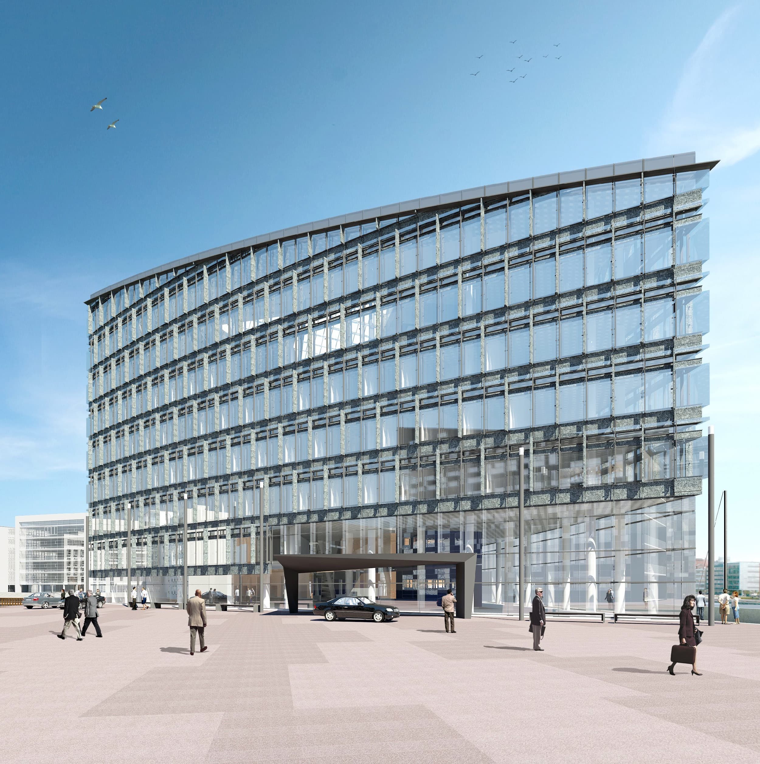 Den store glasfacade skal trække lys ind i det store atrium, som skærer gennem bygningen fra syd til øst. Atriet er bygget i granit, egetræ, valnød og matteret glas, der skal afspejle afvekslingen i de nordiske årstider.