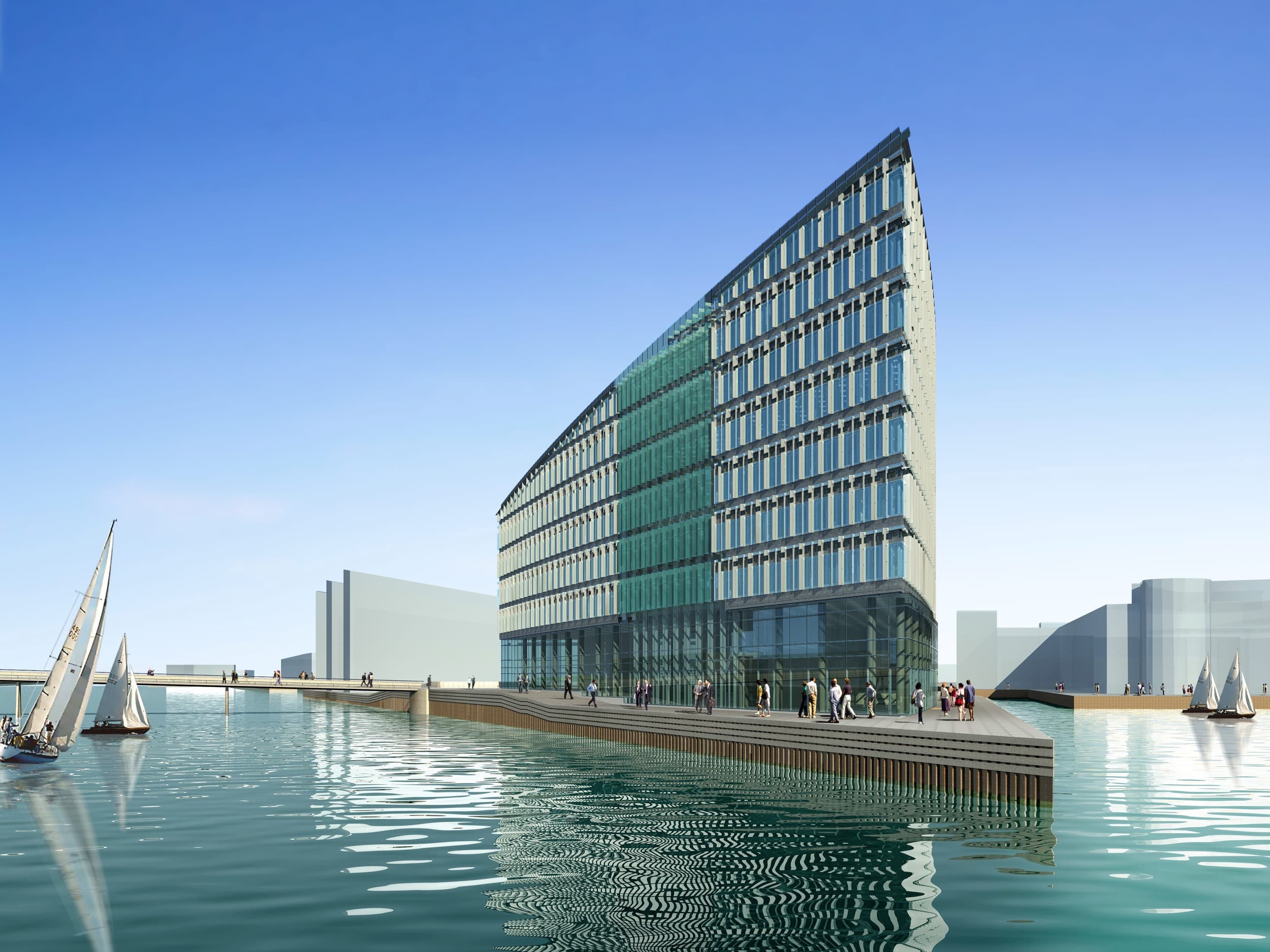Mediehuset Aller har samlet alle deres aktiviteter i et trekantet domicil i Københavns havn. Bag Fisketorvet på Havneholmens yderste mole har PLH arkitekter skabt et otte etagers domicil i glas, stål og aluminium, som Københavns tidligere stadsarkitekt Jan Christiansen har kaldt 'arketypisk maskulint' med sine stramme linjer, skarpe vinkler og store rene facade uden nogen form for dikkedarer. Som et af de første nye byggerier på området bag Fisketorvet mødte det en del kritik for sin karakter. I dag synes københavnerne at have vænnet sig til det i området, der siden er blevet et sandt trafikknudepunkt for bløde trafikanter på tværs af havneløbet.