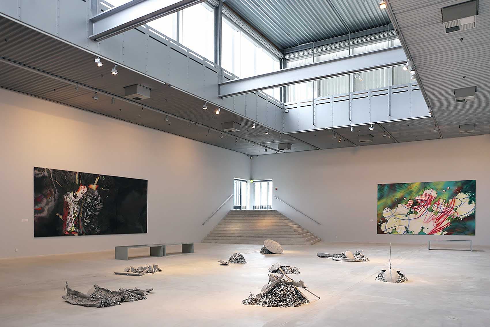 Museet består desuden af en række splittede dele og byder på mange kontraster: skæve vinkler overfor lige, firkantede udstillingsgallerier og store åbne rum som efterfølges af små lukkede.