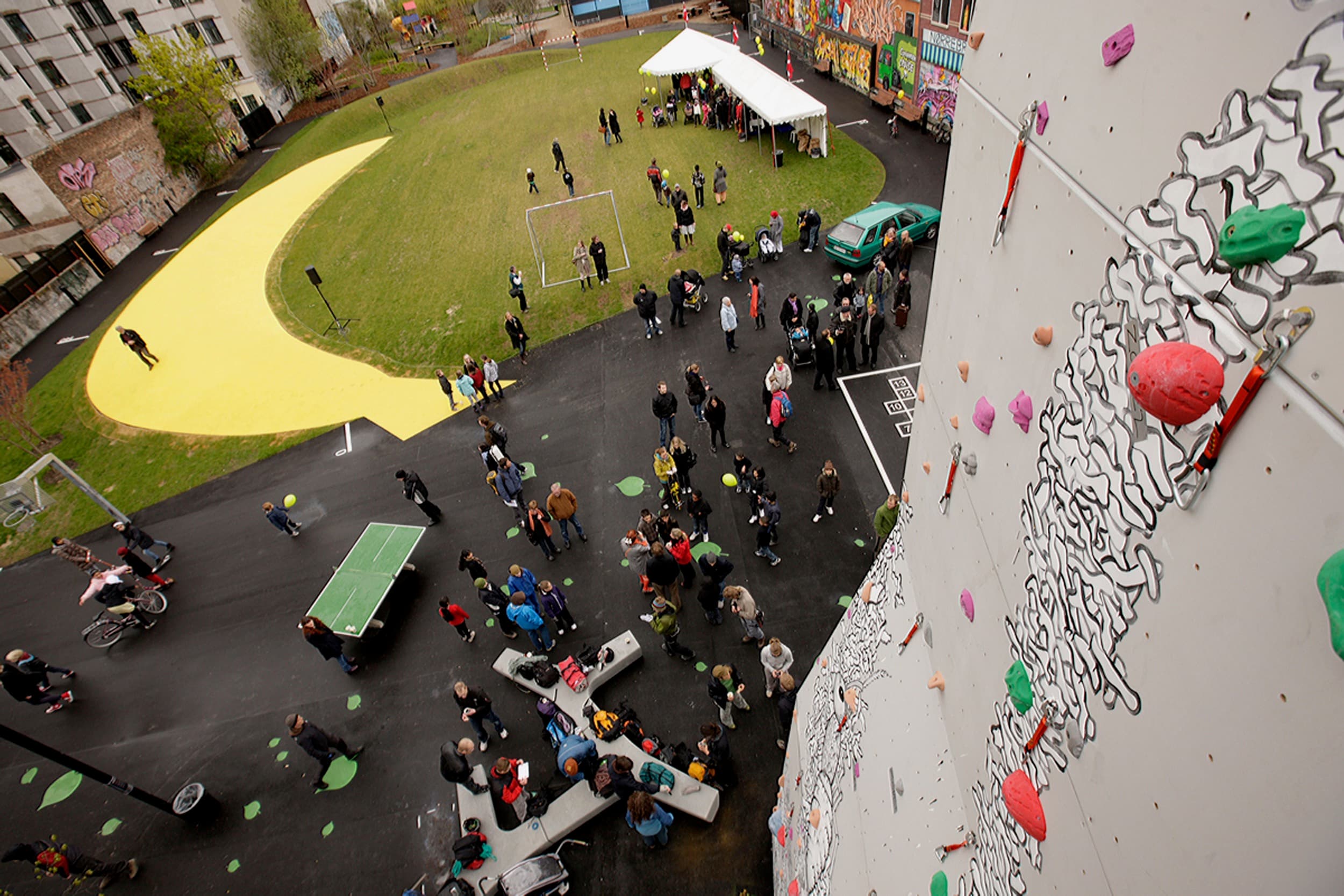 Plænen er først og fremmest tænkt som boldbane, men det er også her, at man finder de karakteristiske bananer, som kan bruges til leg eller som tilskuertribuner ved fx fodboldkampe.
