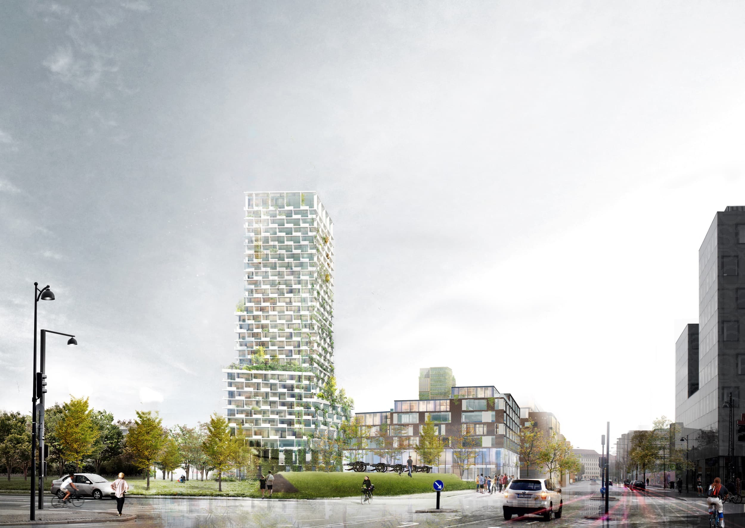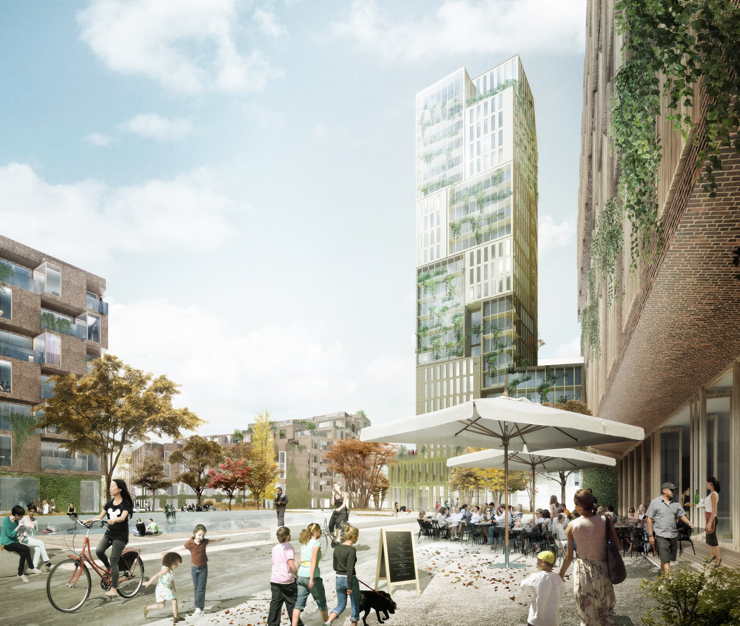 Bygningerne vil kunne huse meget forskellige typer mennesker i en blanding af studentervenlige lejligheder, tre-etagers rækkehuse og eksklusive lejligheder, der både placeres i tårnene og i de otte boliger mellem dem, der er en genfortolkning af Københavns klassiske kareer.