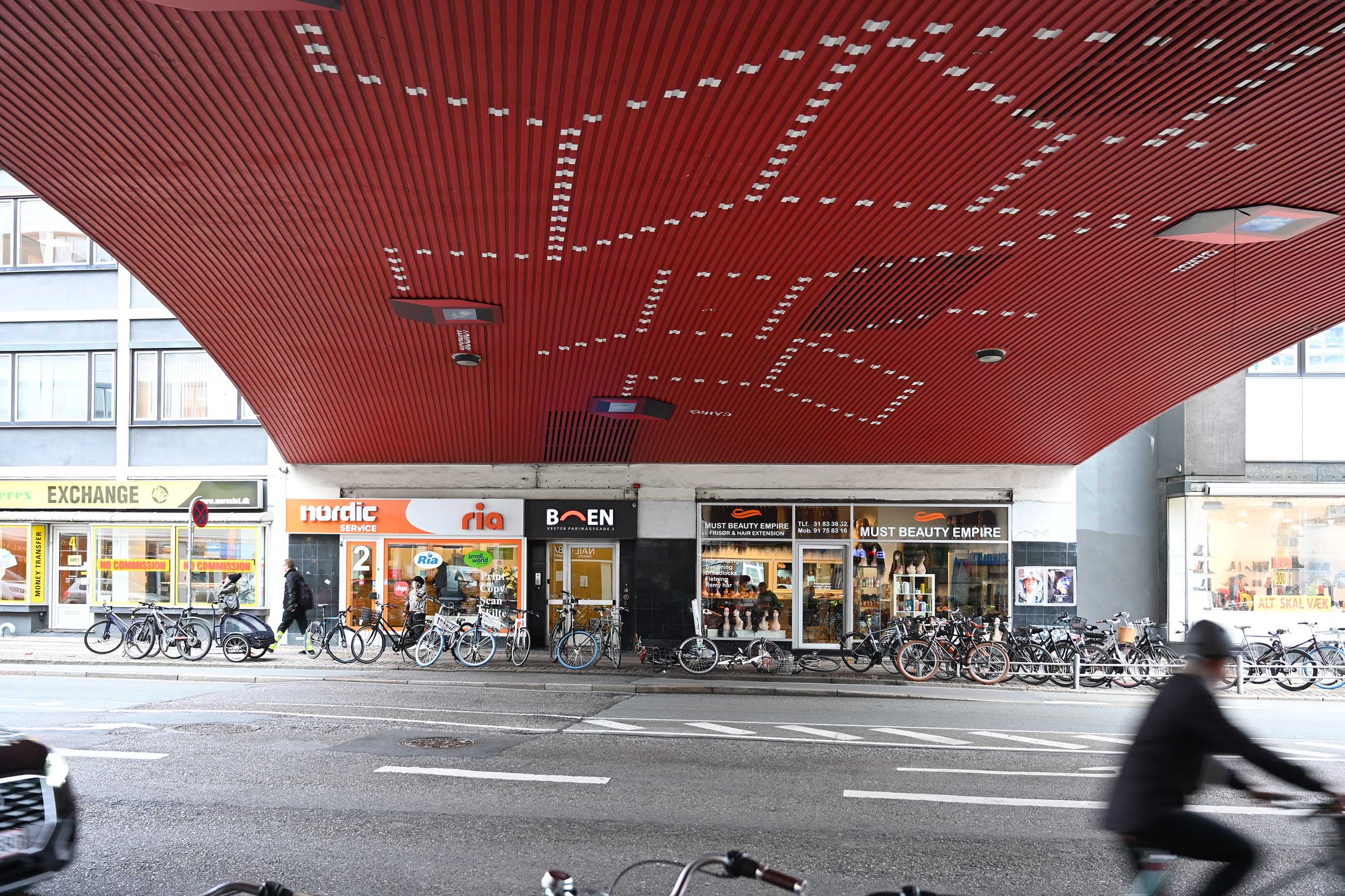 Fra den ene side skiltes der med, at du skal drikke mælk, og fra den anden side er der kronisk ophørsudsalg på sko. Sådan kunne et førstehåndsindtryk af BUEN godt være. Man kunne også se den som en af Københavns mest undervurderede bygninger, der indtager byen ved simpelthen at brede sig ud over og ovenpå, der hvor Vester Farimagsgade møder Vesterbrogade. BUEN er uundgåelig og ikonisk, blandt andet fordi du helt bogstaveligt ikke kan komme udenom.