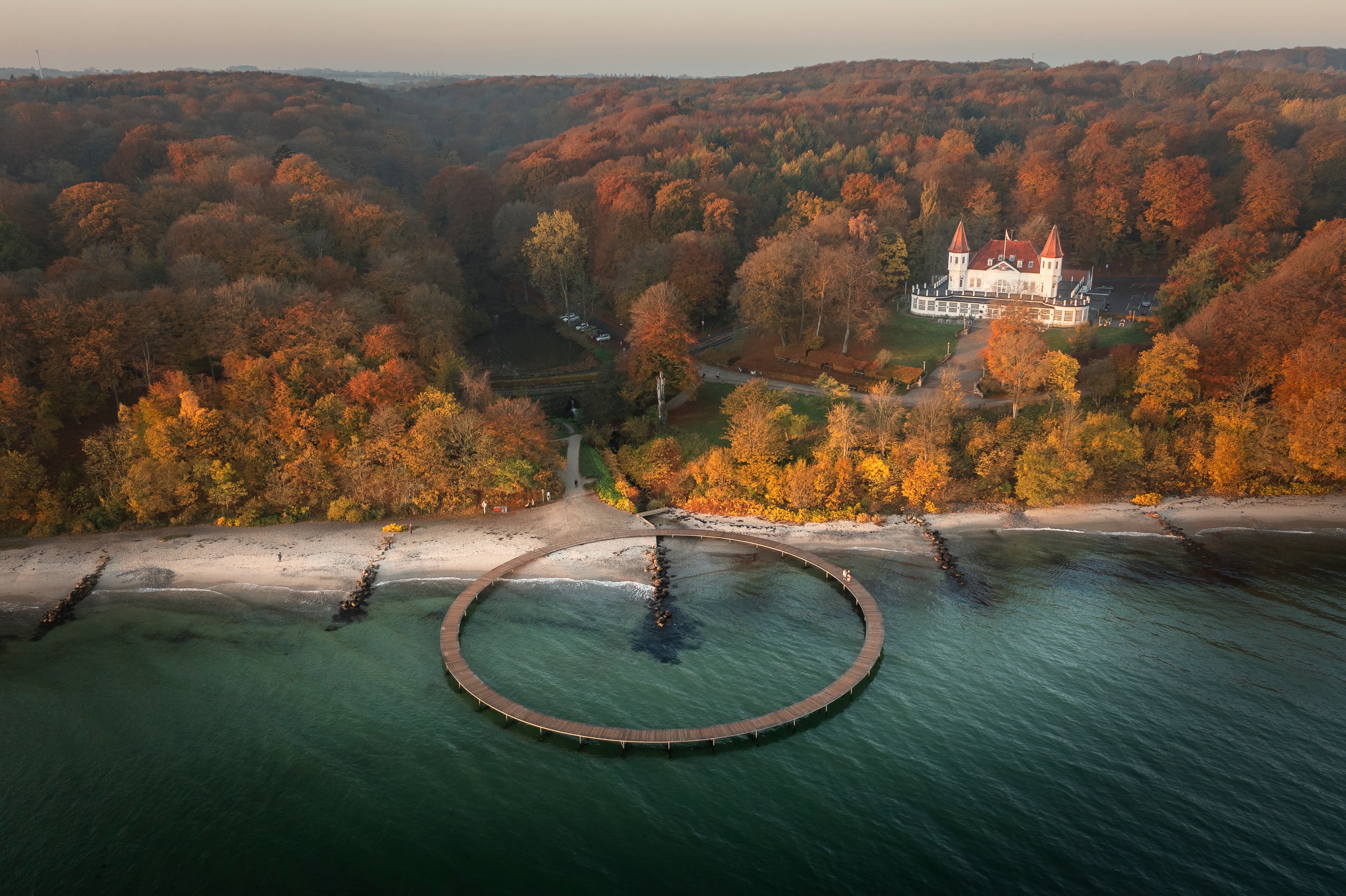 En cirkelformet træbro ligger halvt på land, halvt i vand ud til Aarhus Bugt og skaber et 360 graders udsyn for de besøgende. Og måske endda en lille snært af, hvordan det føles at kunne gå på vandet.