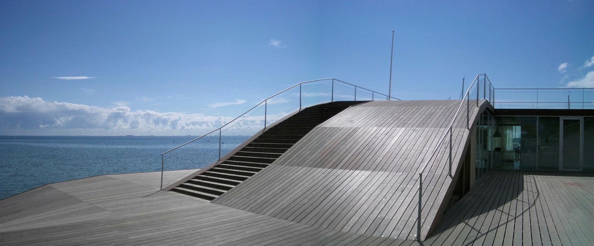 Beboerne ønskede sig et hus, der både kunne rumme faciliteter til Sundby Sejlforenings ungdomsafdeling og fritidsaktiviteter for børn og unge i området. De to ønsker har tegnestuen PLOT (senere BIG og JDS) forenet i en konstruktion med to huse overdækket af et 1.600 kvadratmeter bølgende trædæk, der ligger som et kunstigt landskab ved vandkanten.