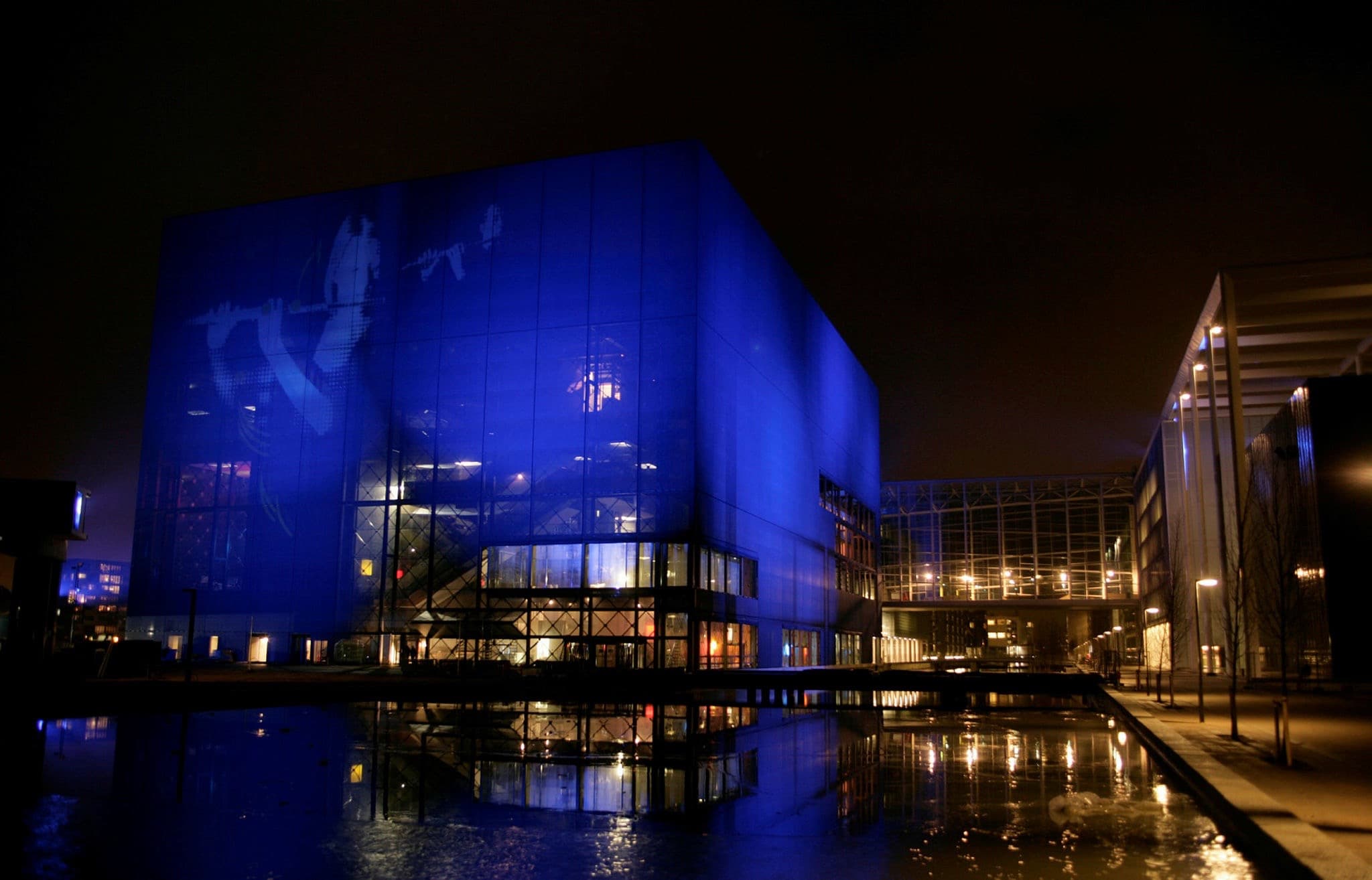 Selvom den blå kube i Ørestad i dag har fået nærmest ikonisk status, er det ved første øjekast ikke til at gætte, hvad den kolossale blå boks gemmer på. Måske er bygningen helt ensfarvet, men kommer man forbi på det rigtige tidspunkt, kan facaden være oplyst af levende billeder, der giver forudanelser om, hvad der foregår på indersiden.